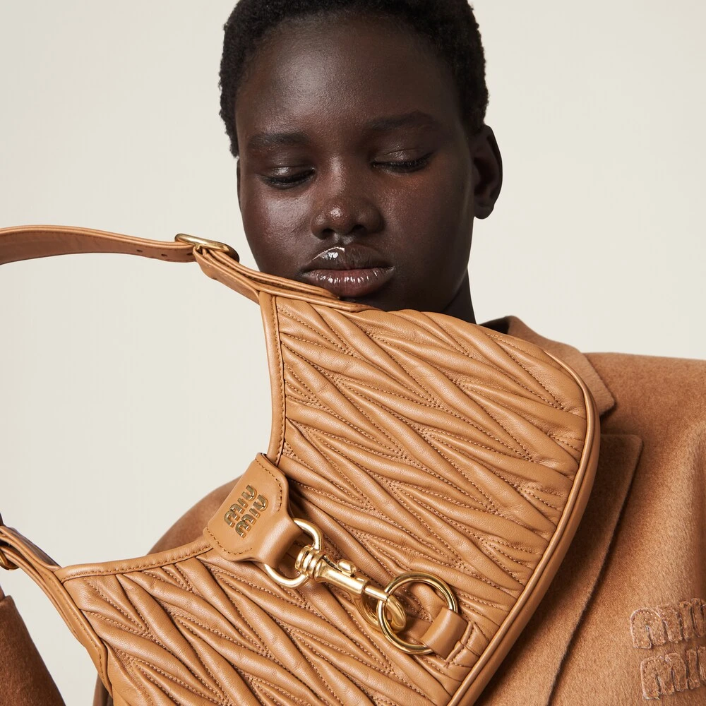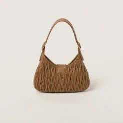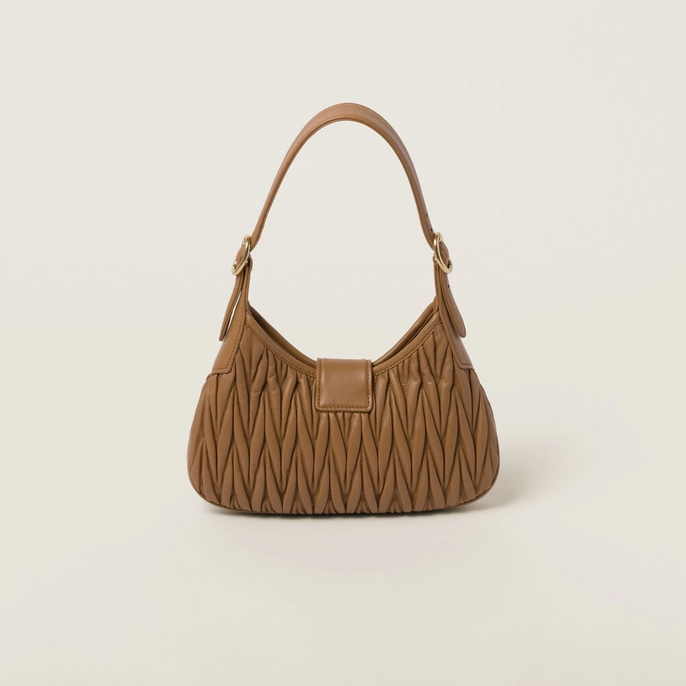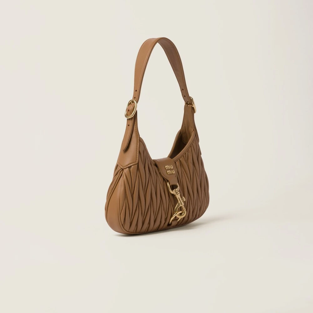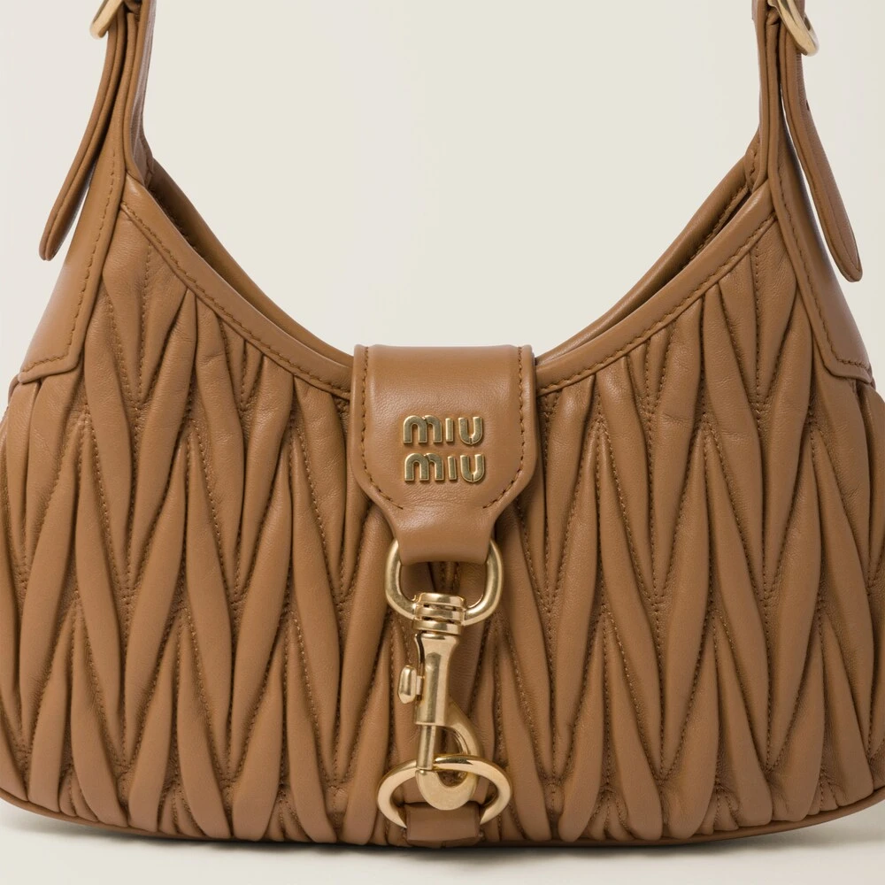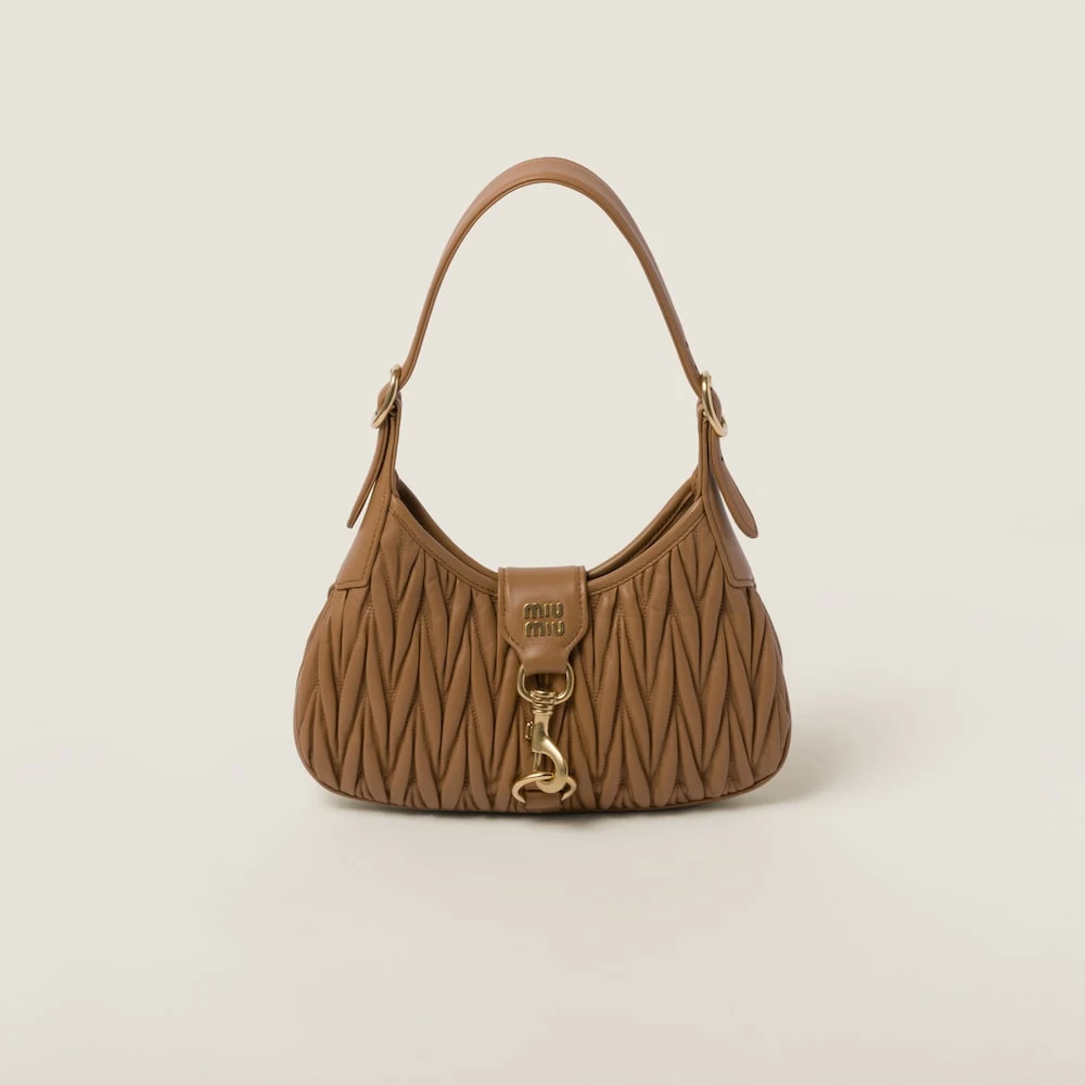 The finely crafted matelassé motif creates a textured and extremely sophisticated three-dimensional effect on the compact lines of the new nappa leather hobo bag. The curved design and fine artisan crafting are enhanced by the brilliant touches of the metal hardware, snap-hook closure, and the logo that completes the aesthetic with an iconic and immediately recognizable note.