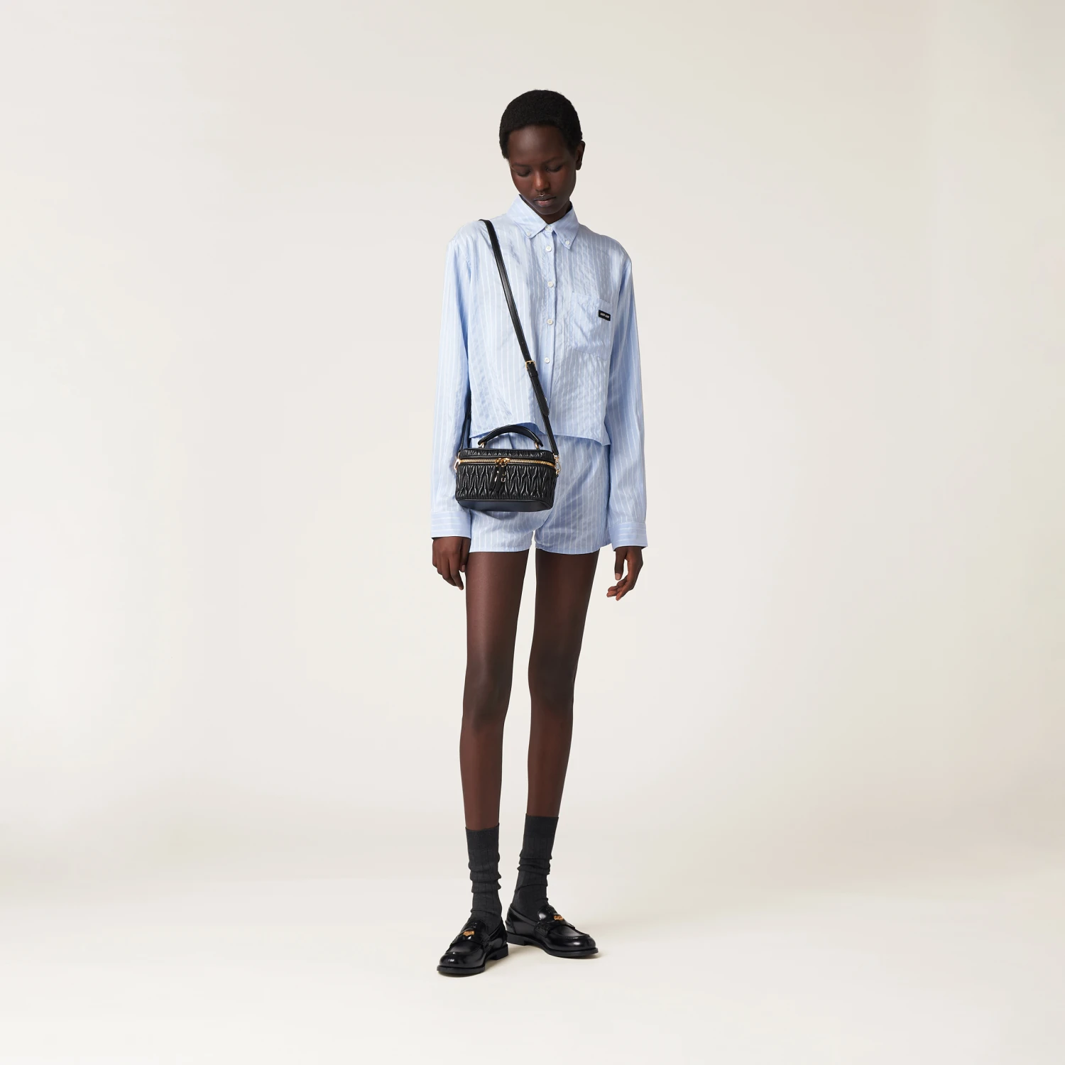 The finely crafted matelassé motif creates a textured and extremely sophisticated three-dimensional effect on the compact lines of the new nappa leather bag. The captivating metal logo that echoes different finishes stands out against the refined artisan motif with an iconic, brilliant and immediately recognizable touch. The sleek lines and adjustable shoulder strap define the elegant yet dynamic design.