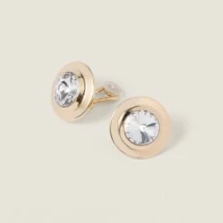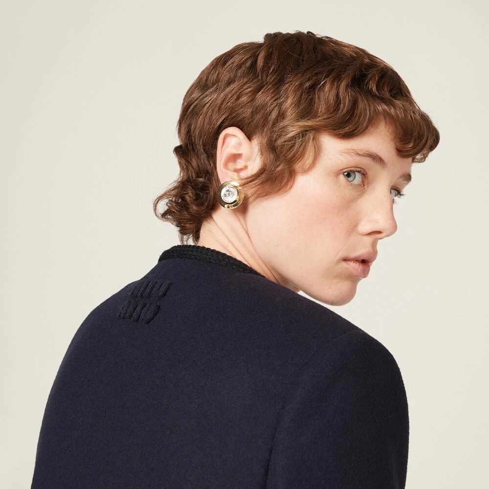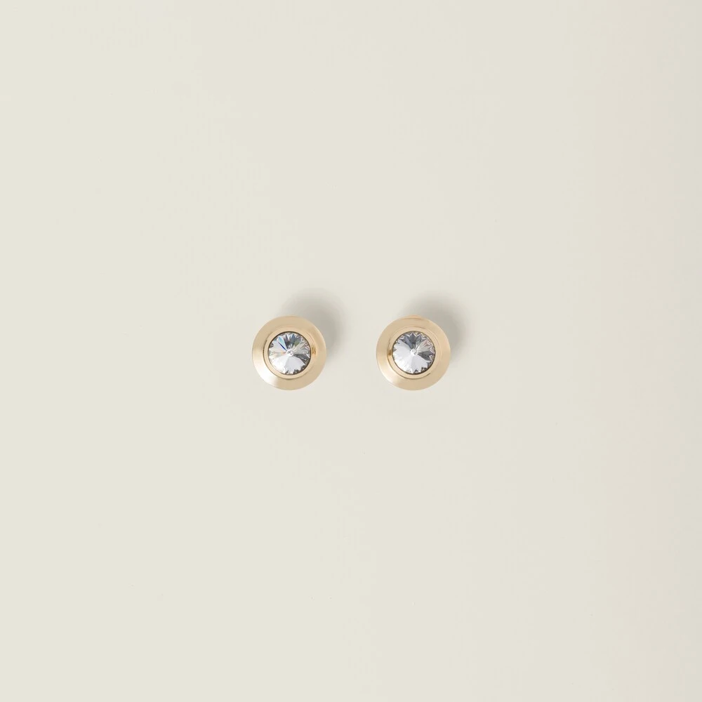 The engraved Miu Miu logo on the back gives these earrings an unexpected iconic and distinctive touch, while the artificial crystal embellishment completes the design with a touch of sparkle.