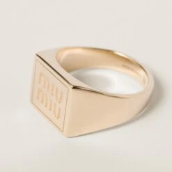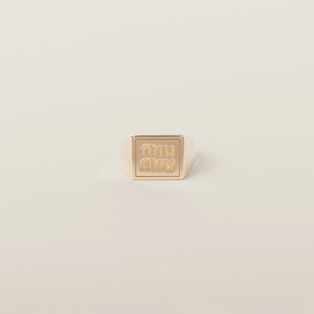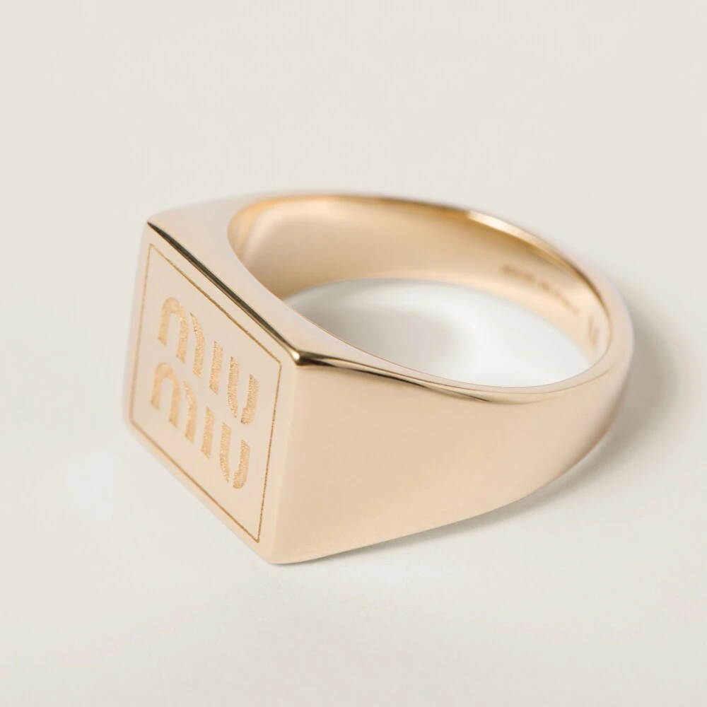 The visible engraved logo stands out on this ring, giving it a refined, iconic touch.