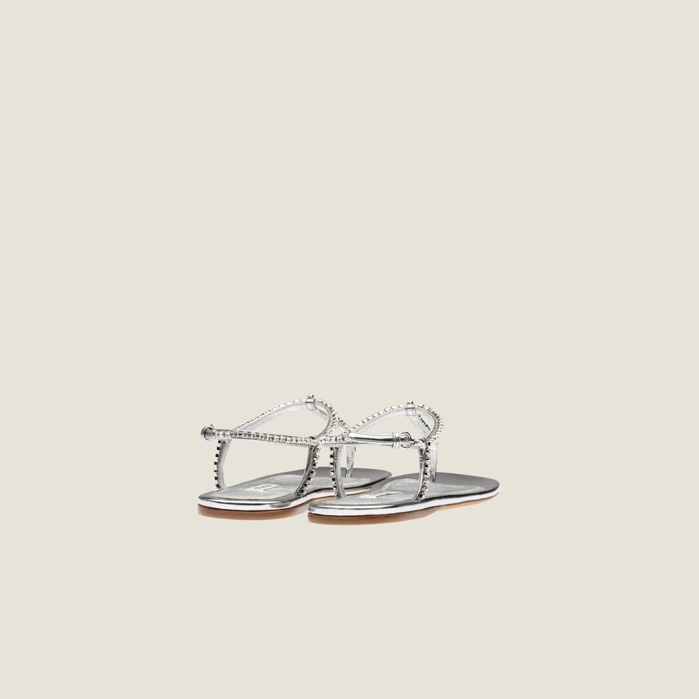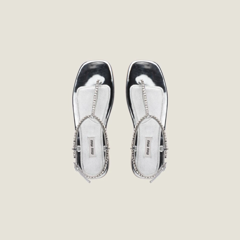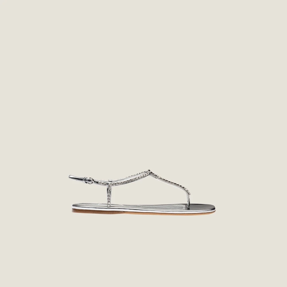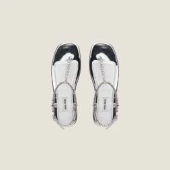 The sleek design of these metallic technical fabric thongs is illuminated by the crystals on the upper. The leather sole is decorated with the fabric logo label.