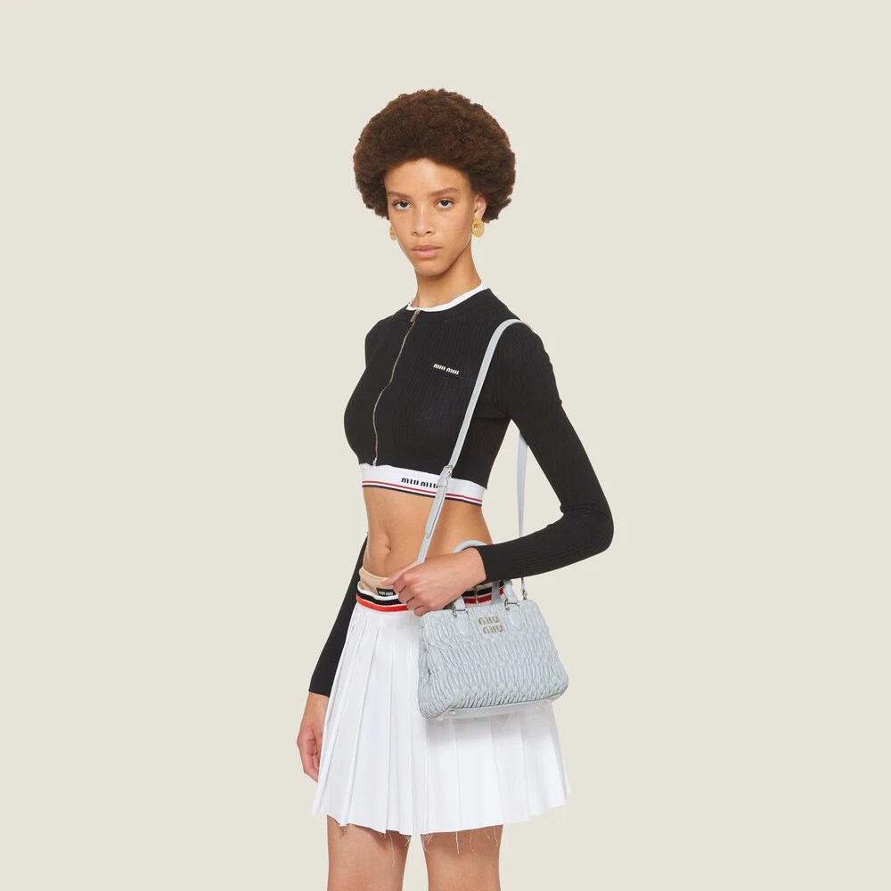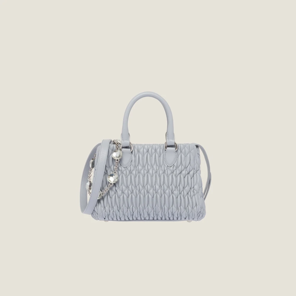 Sparkling crystals decorating the chain shoulder strap define the sophisticated design of this nappa leather bag. The iconic cloquet motif adds a classic note to the bag.