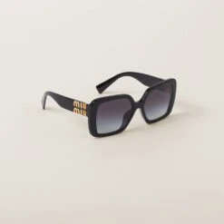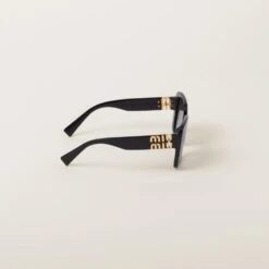 Acetate sunglasses characterized by their oversized frame. The large front with bold rims expresses contemporary femininity. The refined vertical Miu Miu logo is integrated into the hinge of the straight temples.