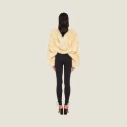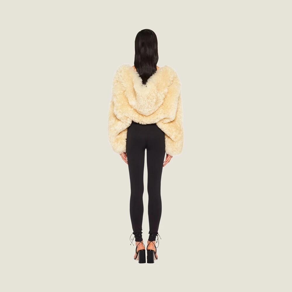 A soft texture enhances this hooded stole. New perspective on classic codes are reimagined with elements from the streetwear world.