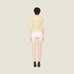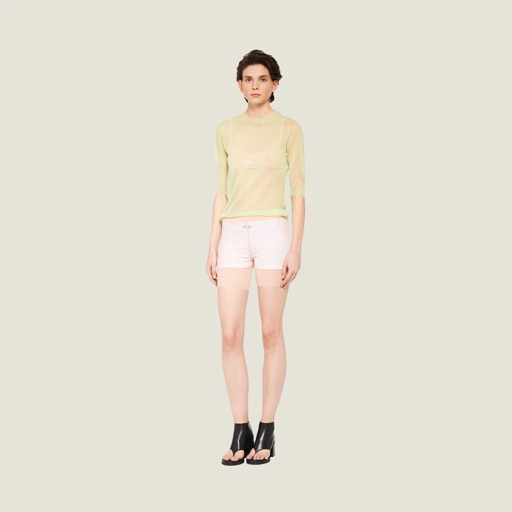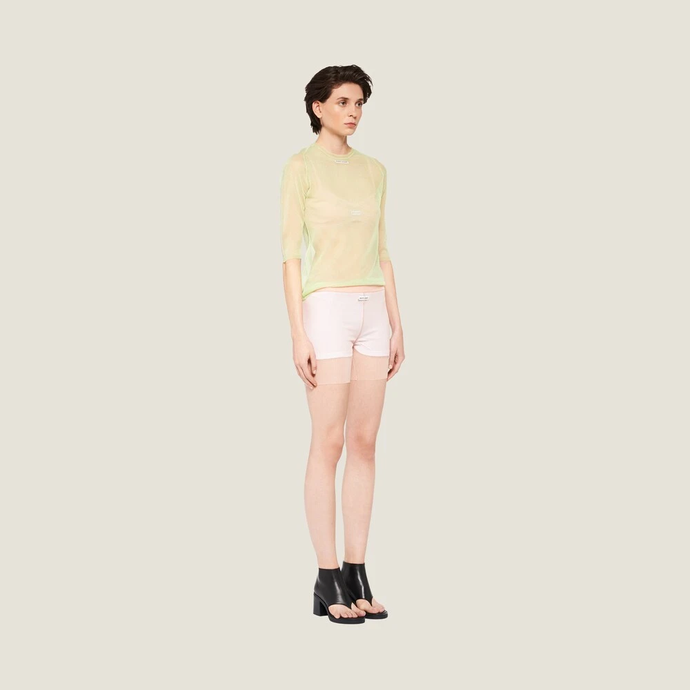 During the Spring-Summer 2023 show, these nylon shorts represented a concept of fashion as an integral part of real life where utility, benefit, and service affect physical expression. The smooth texture and sleek lines are perfect for sophisticated layering effects. The logo patch decorates this new vision of style.