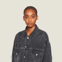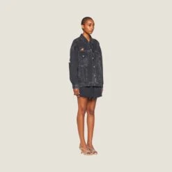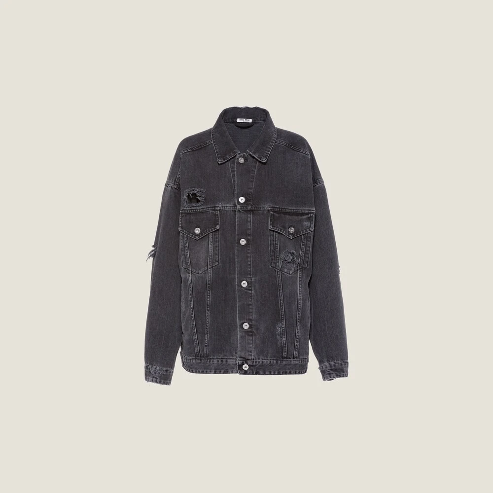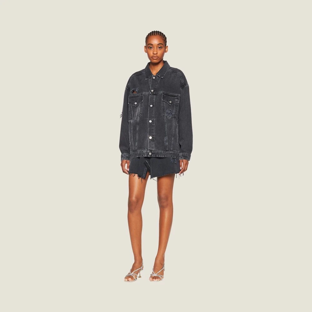 An oversized silhouette characterizes this denim blouson jacket that blends streetwear inspirations with the brand’s typical romanticism. Stitched details and the washed treatment give the garment vintage allure.