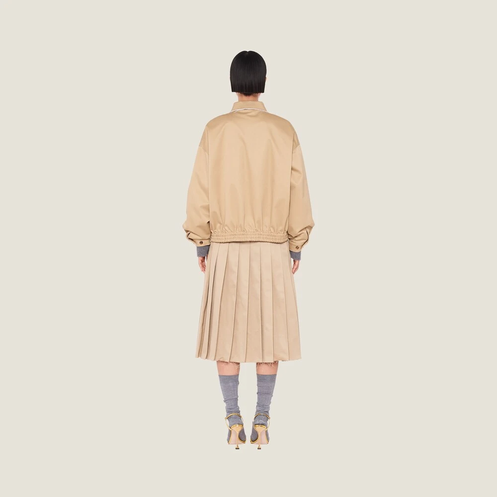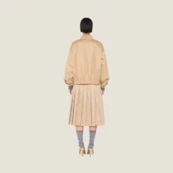 The Miu Miu Spring Summer 2022 collection is an exercise in references and a study of reality, using what exists to create new irreverent silhouettes through novel proportions and precious details. Classic tailoring is subverted and classic women’s garments take on new meanings.