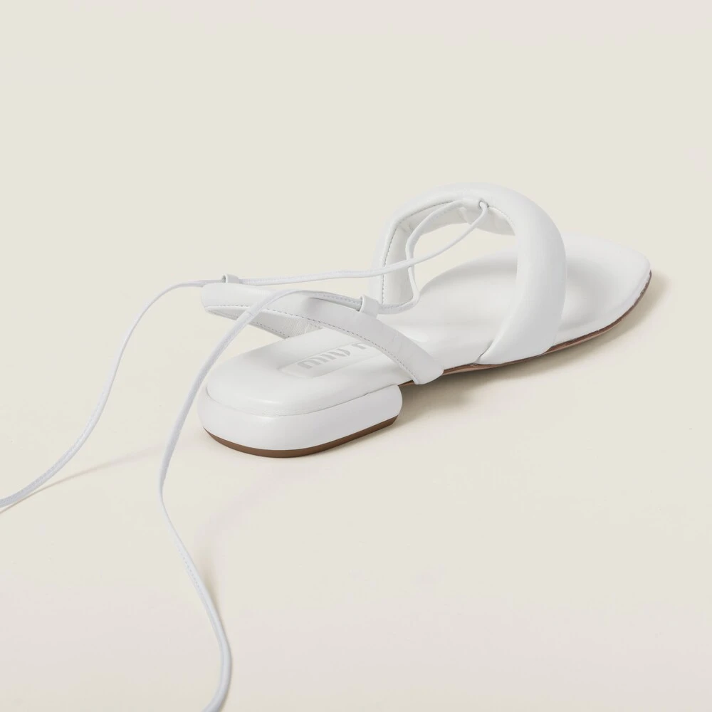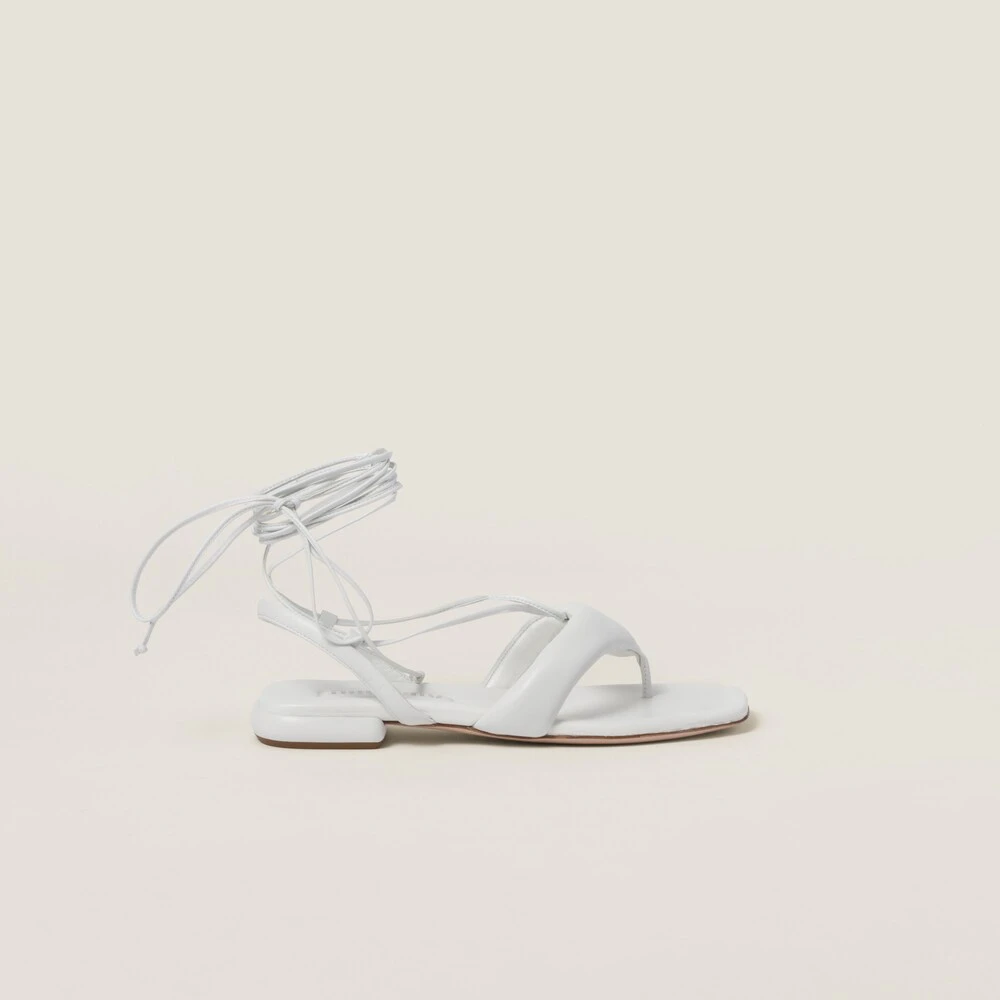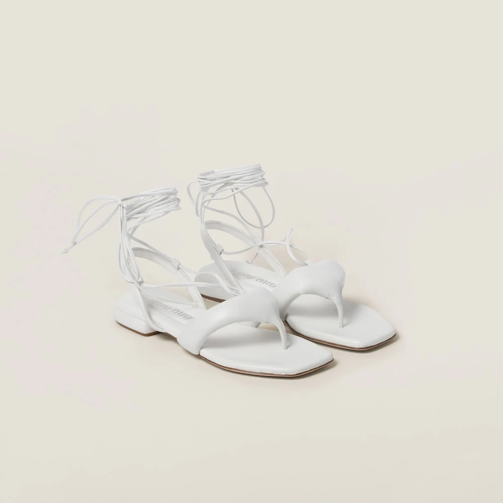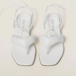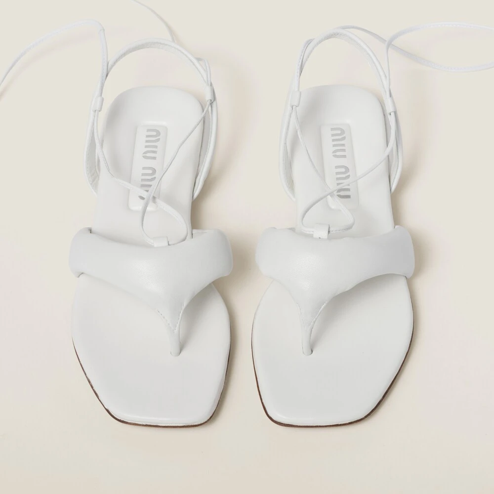 Feminine, sleek, and refined: the new leather thong sandals are accented with the hot-stamped logo that gives the style a strong and distinctive personality. The leather sole and covered heel complete the design of the shoe.