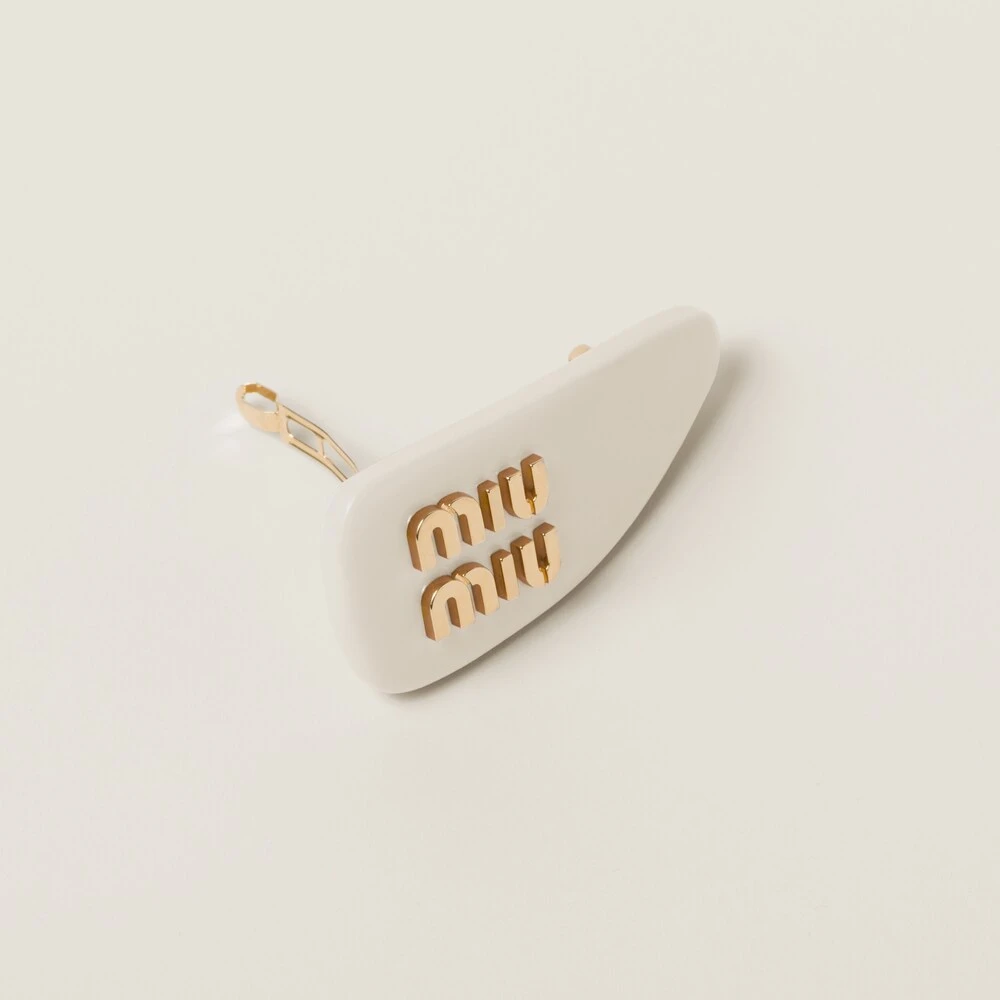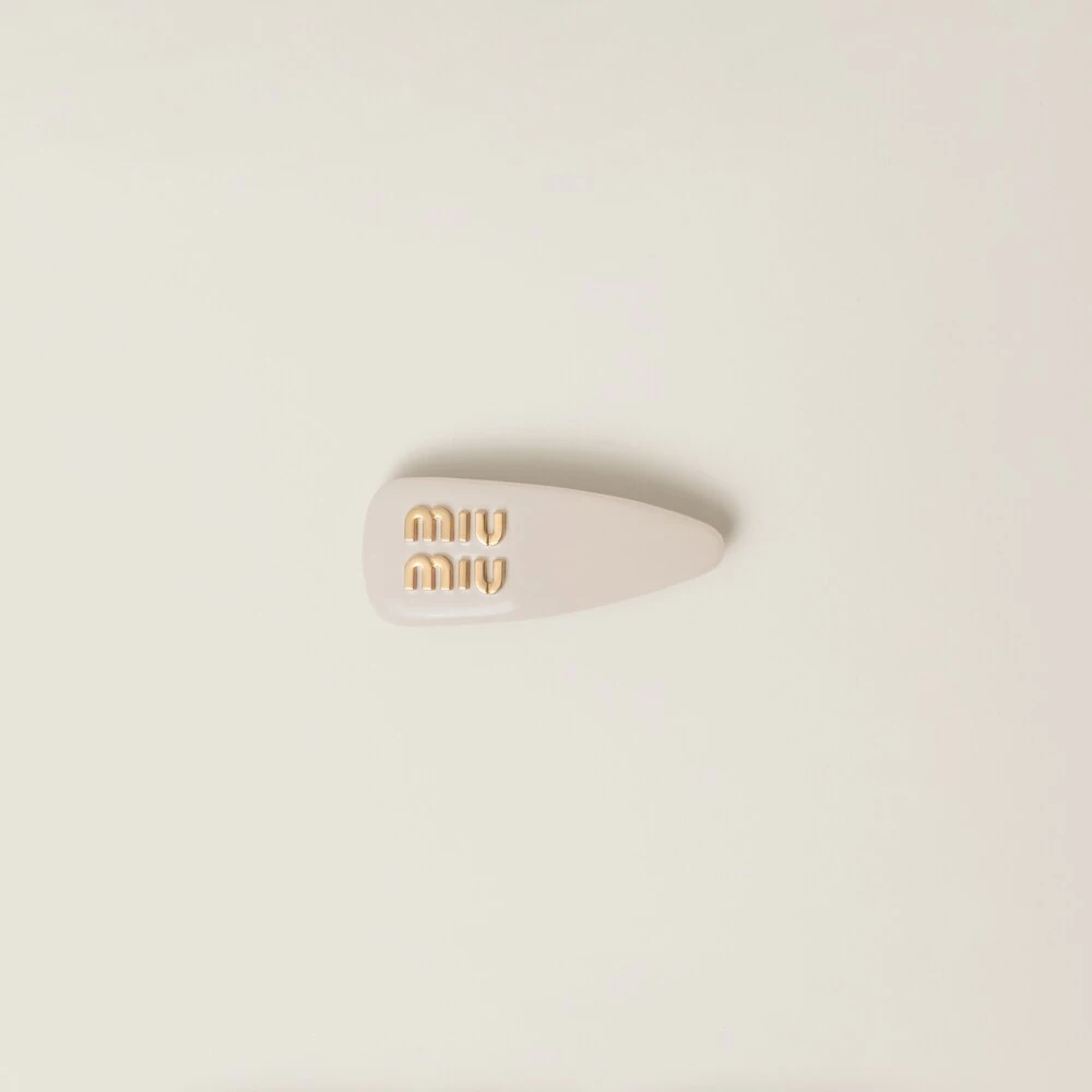 The iconic Miu Miu logo stands out on this patent leather hair clip.
