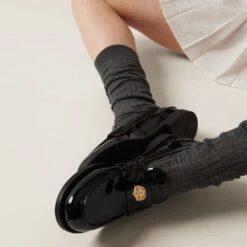 In the 1950s, loafers were part of the uniform worn by American college students. Opposed to wearing a uniform, students started inserting a penny in the slot on the leather strap, which originated the name “penny loafer.” This timeless footwear synonymous with tradition is reimagined by Miu Miu in the new collection in a bolder version.