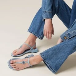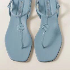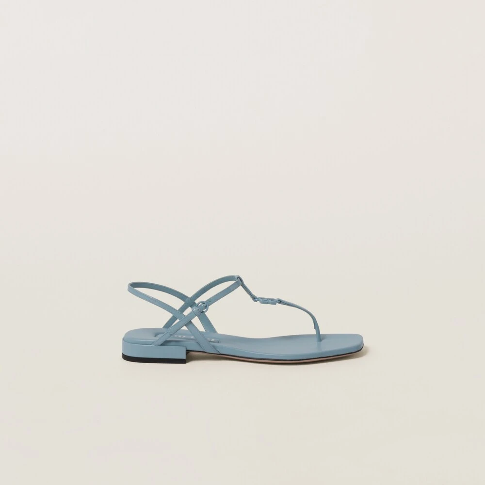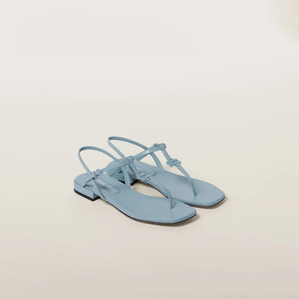 The minimalist lines of these new patent thong sandals are enhanced by Miu Miu’s iconic and distinctive character. The simple yet sophisticated aesthetic makes the style versatile and elegant.