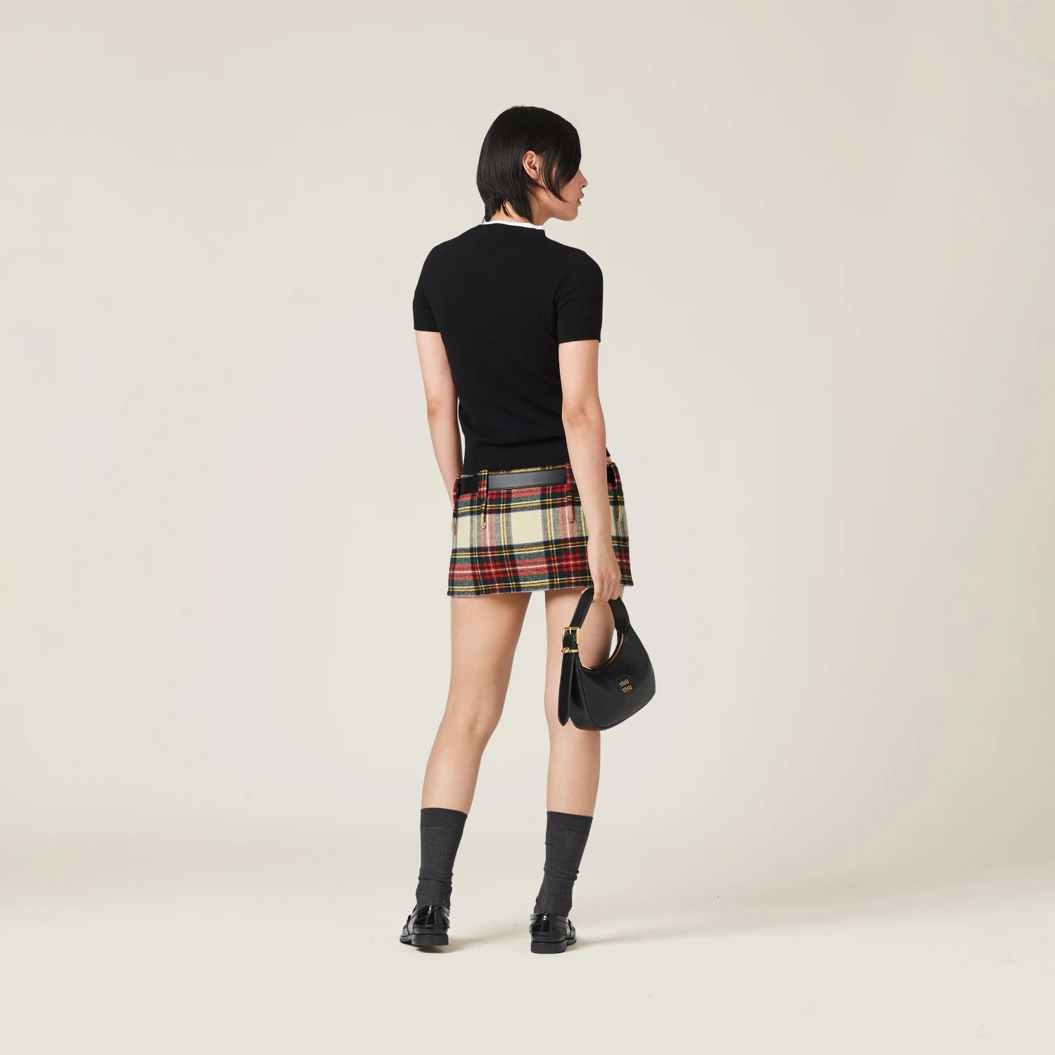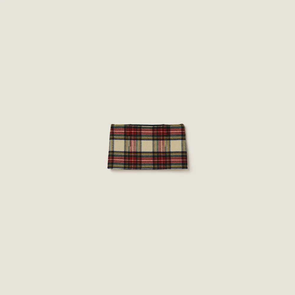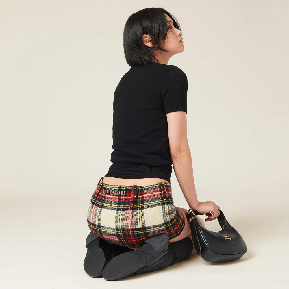 The classic plaid pattern meets Miu Miu’s exuberant style in this miniskirt. The embroidered logo completes the look with an iconic and distinctive note.