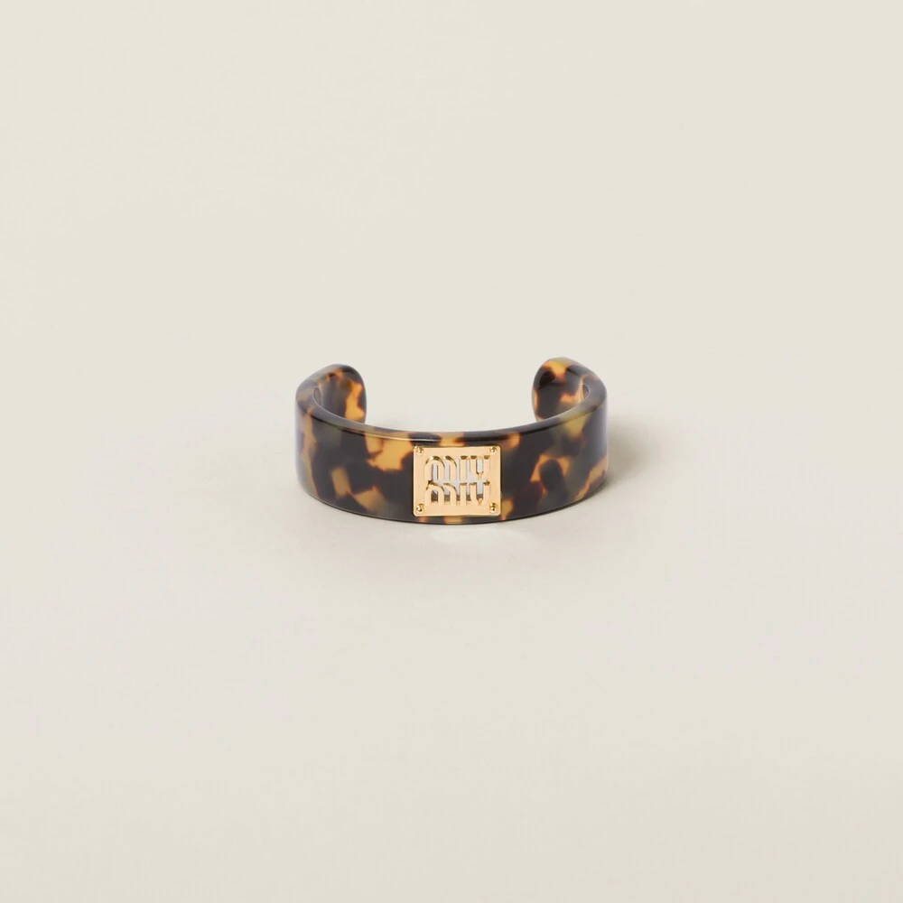 A classic yet contemporary aesthetic characterizes this new Plexiglas and metal bracelet. The retro pattern is accented with the Miu Miu logo that completes the design with an iconic note.