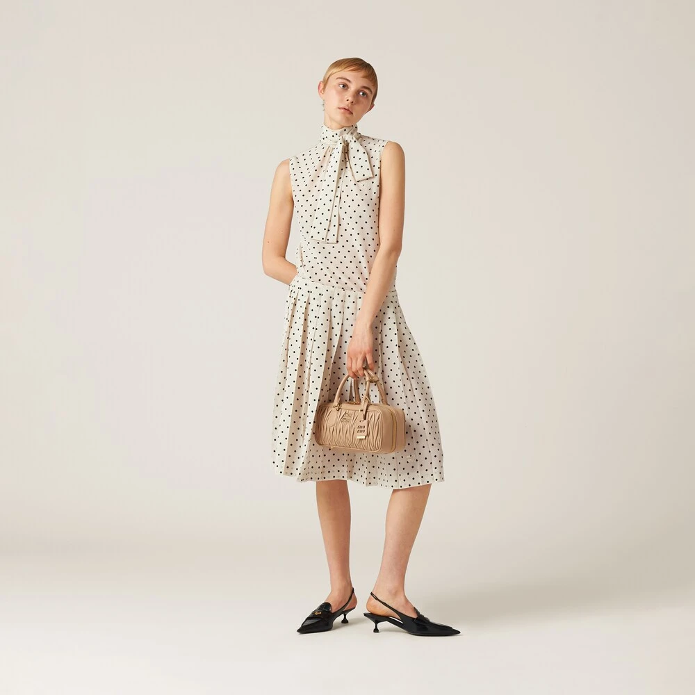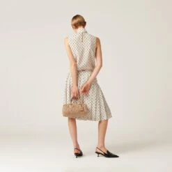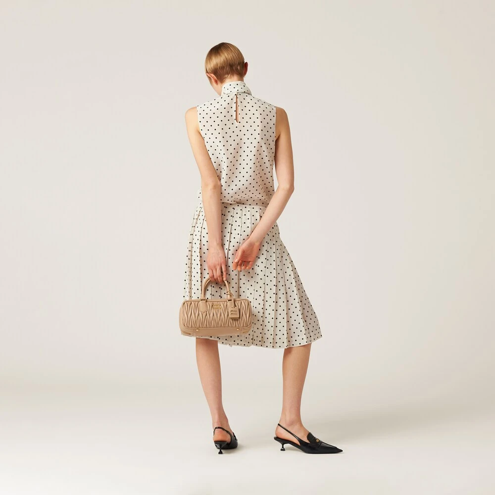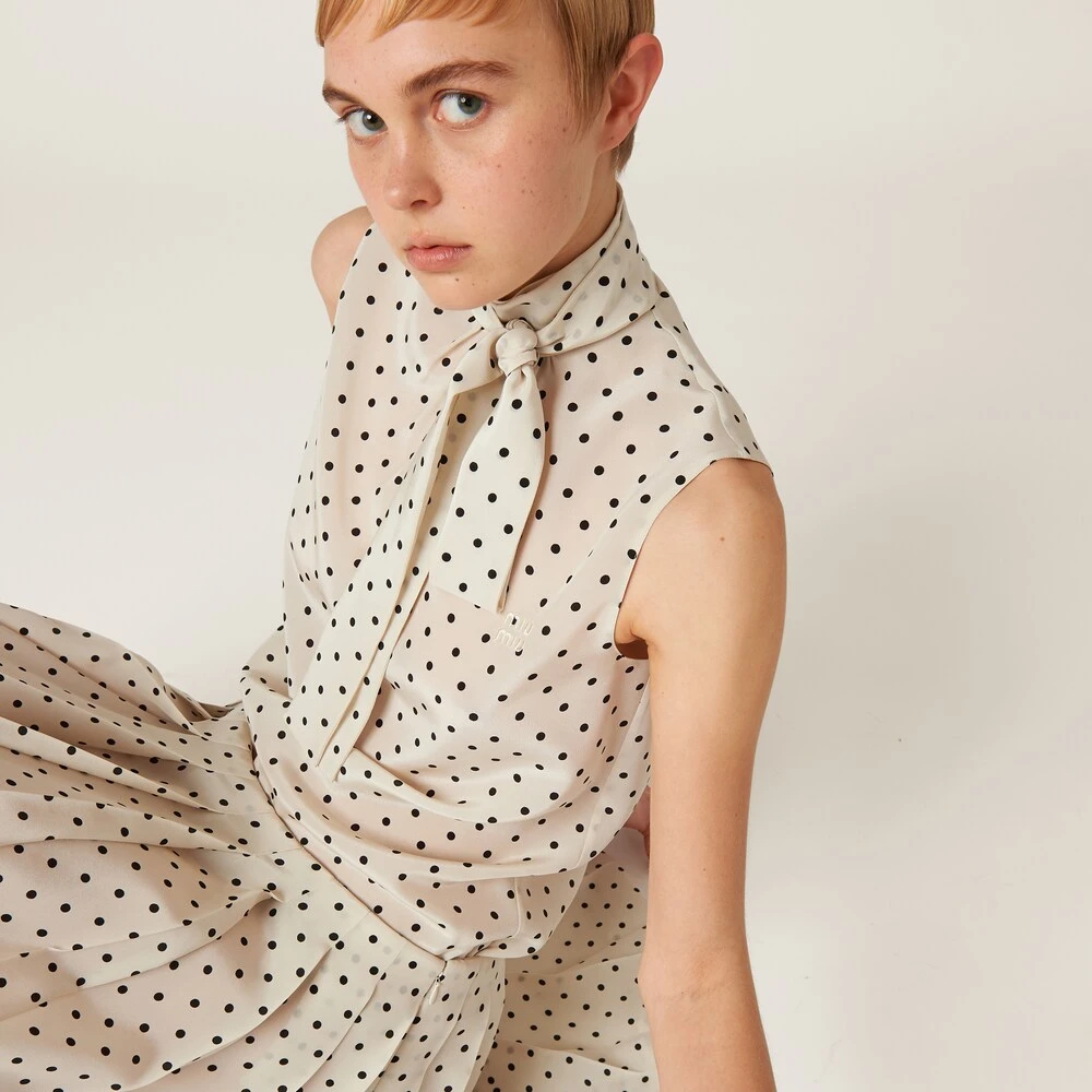 A lively, retro style characterizes this polka-dot crepe de chine top. The scarf collar adds a refined detail to the look while the embroidered logo completes the design with an iconic note.