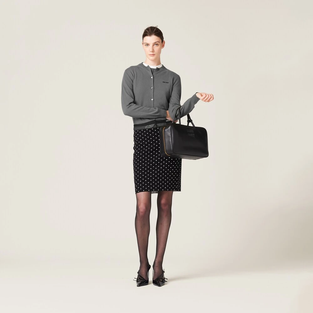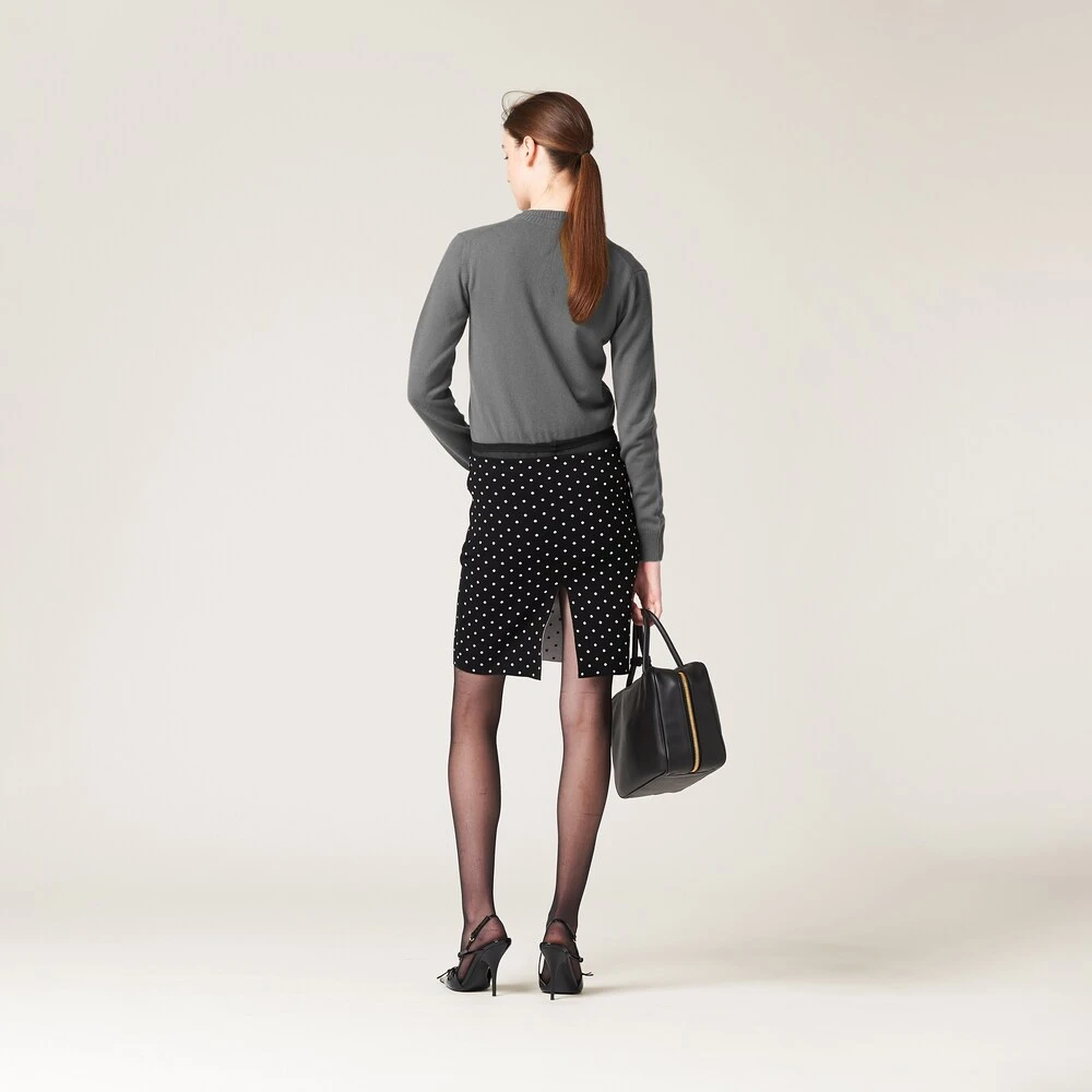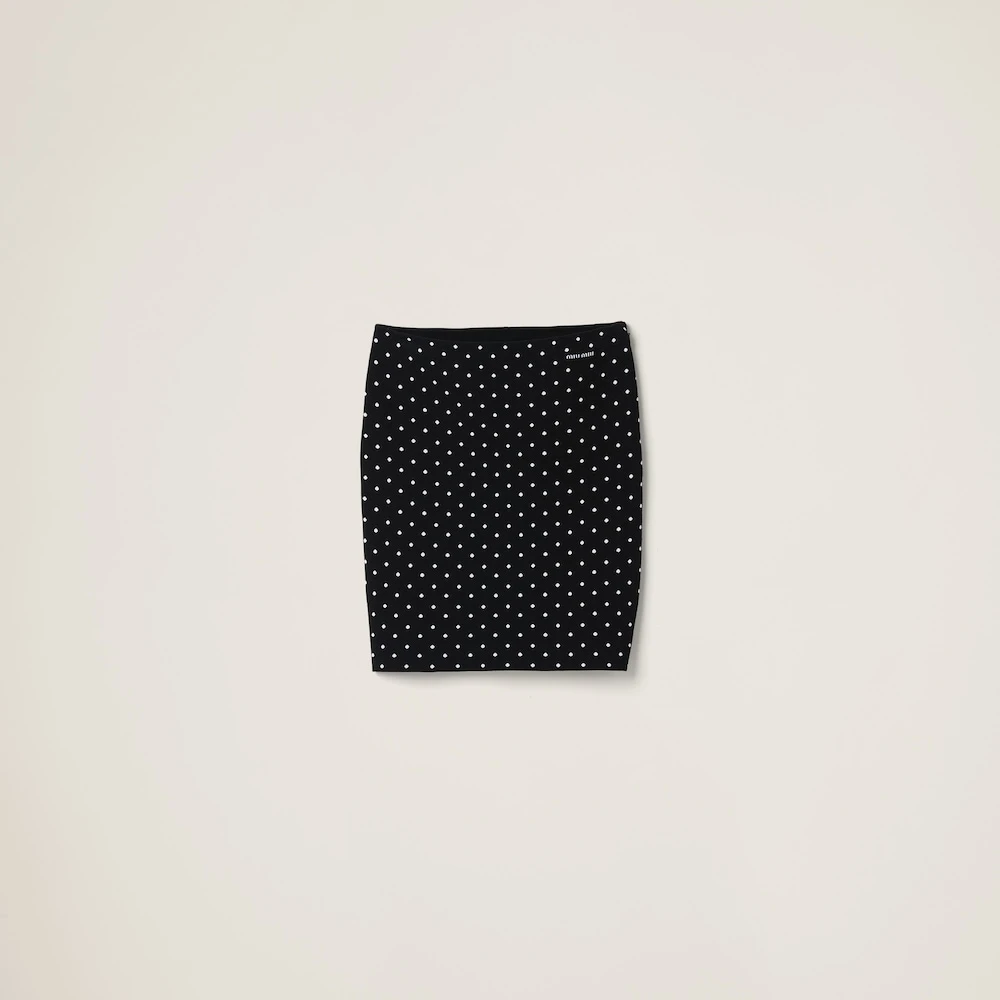 A lively polka-dot print covers this viscose skirt. The double weave gives more body to the fabric while the logo patch completes the look with an iconic note.