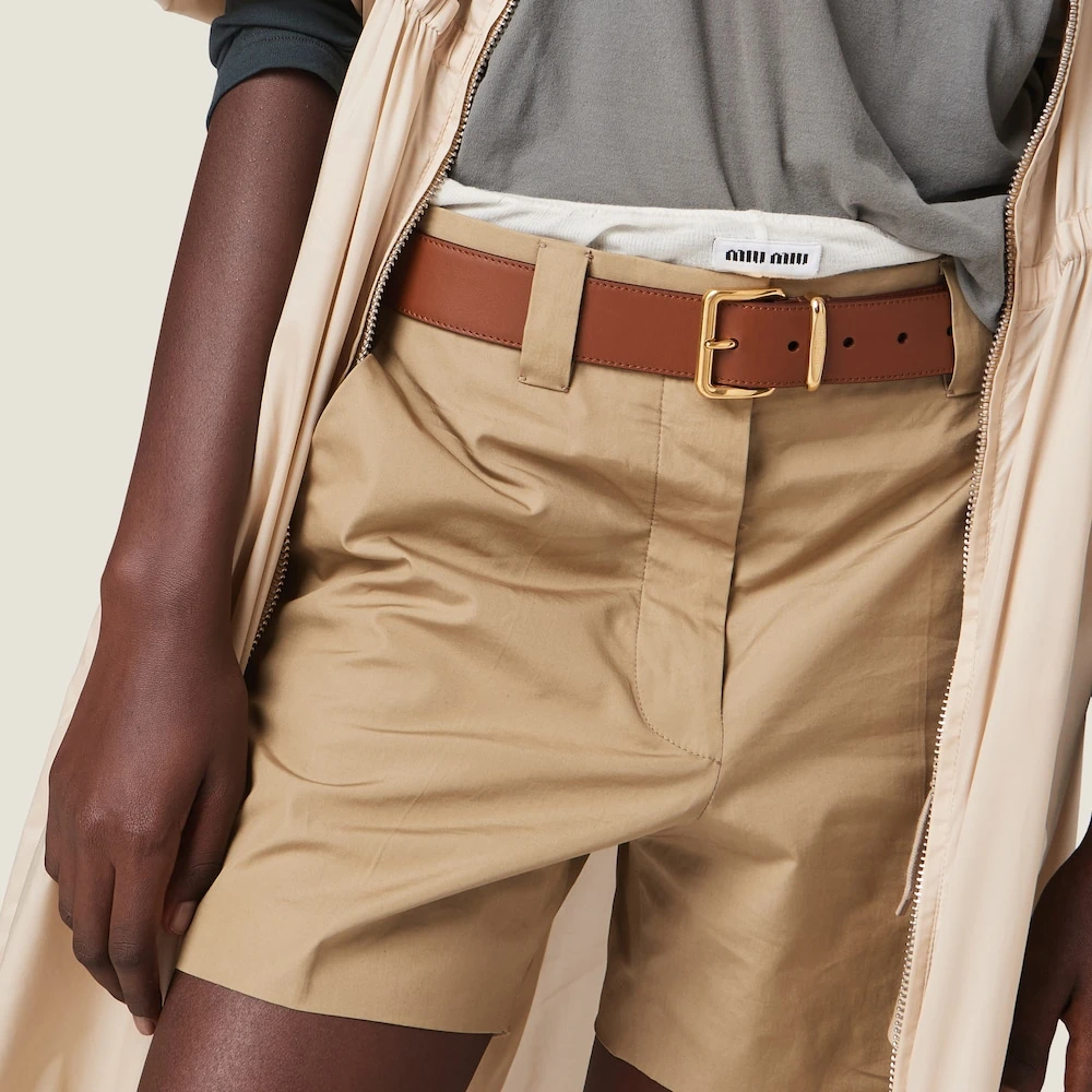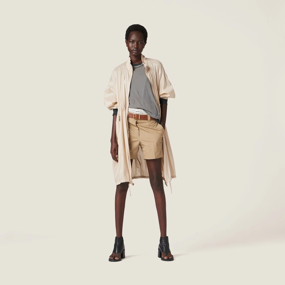 Present on the catwalk during the Spring-Summer 2023 show, these poplin Bermudas express a notion of fashion as a means of translating a reaction to current reality into material form. Relaxed lines and masculine-inspired design define a casual attitude. The embroidered logo on the back crosses the boundaries between function and decoration and completes the garment with a distinctive, iconic note.