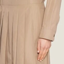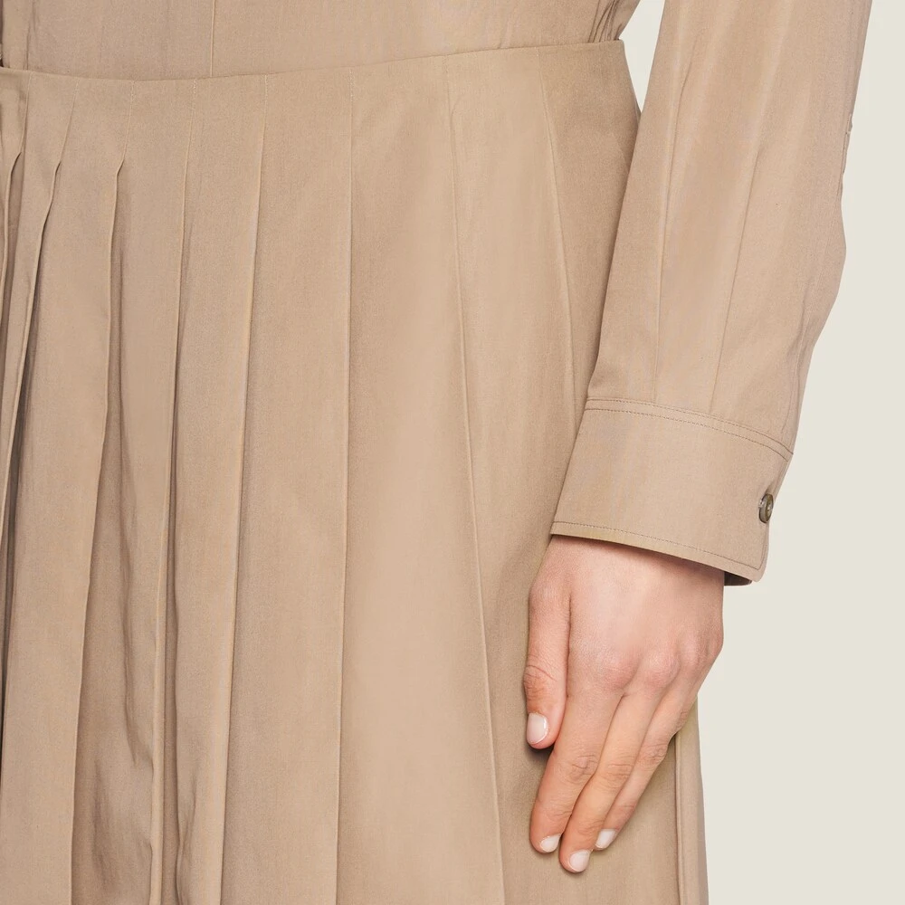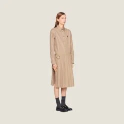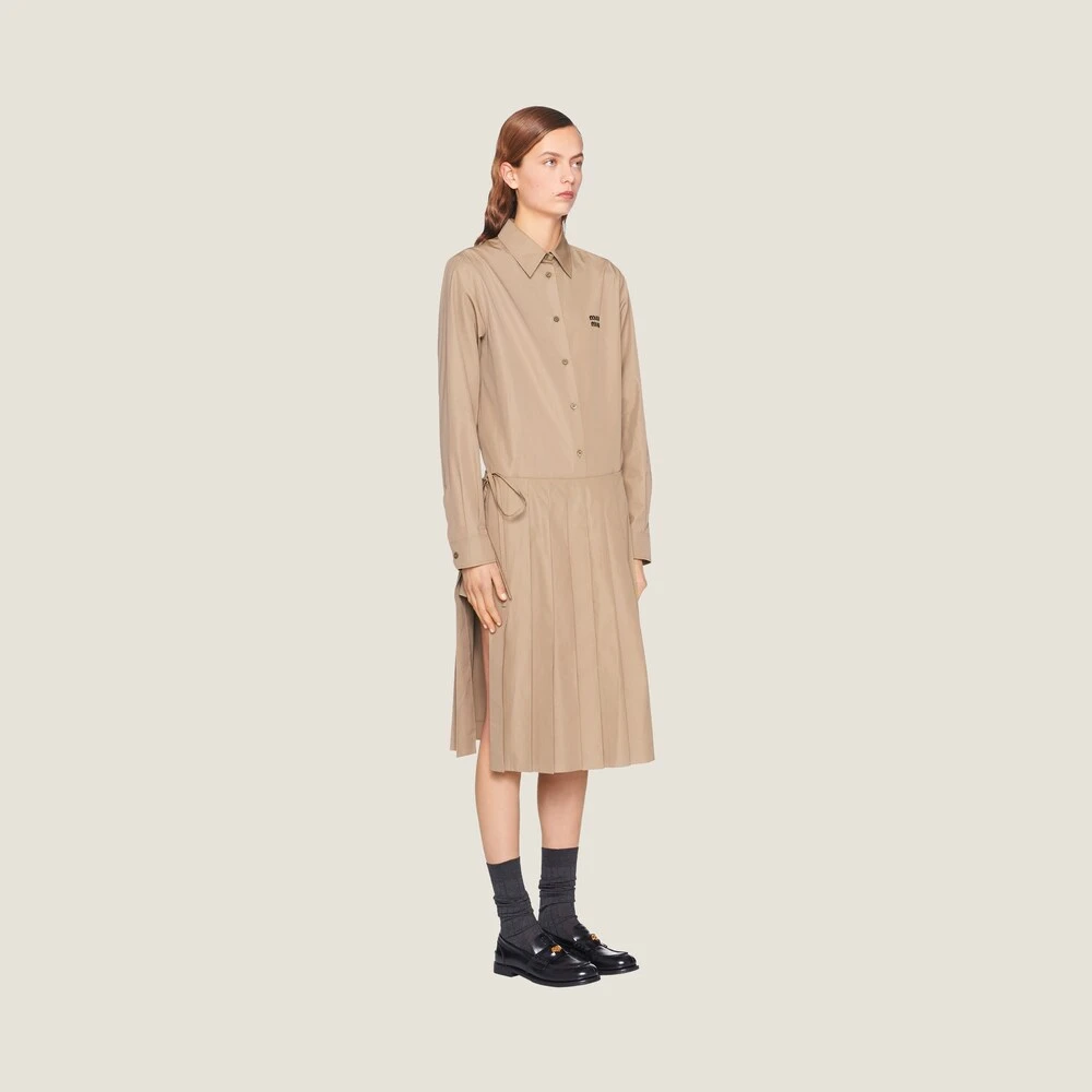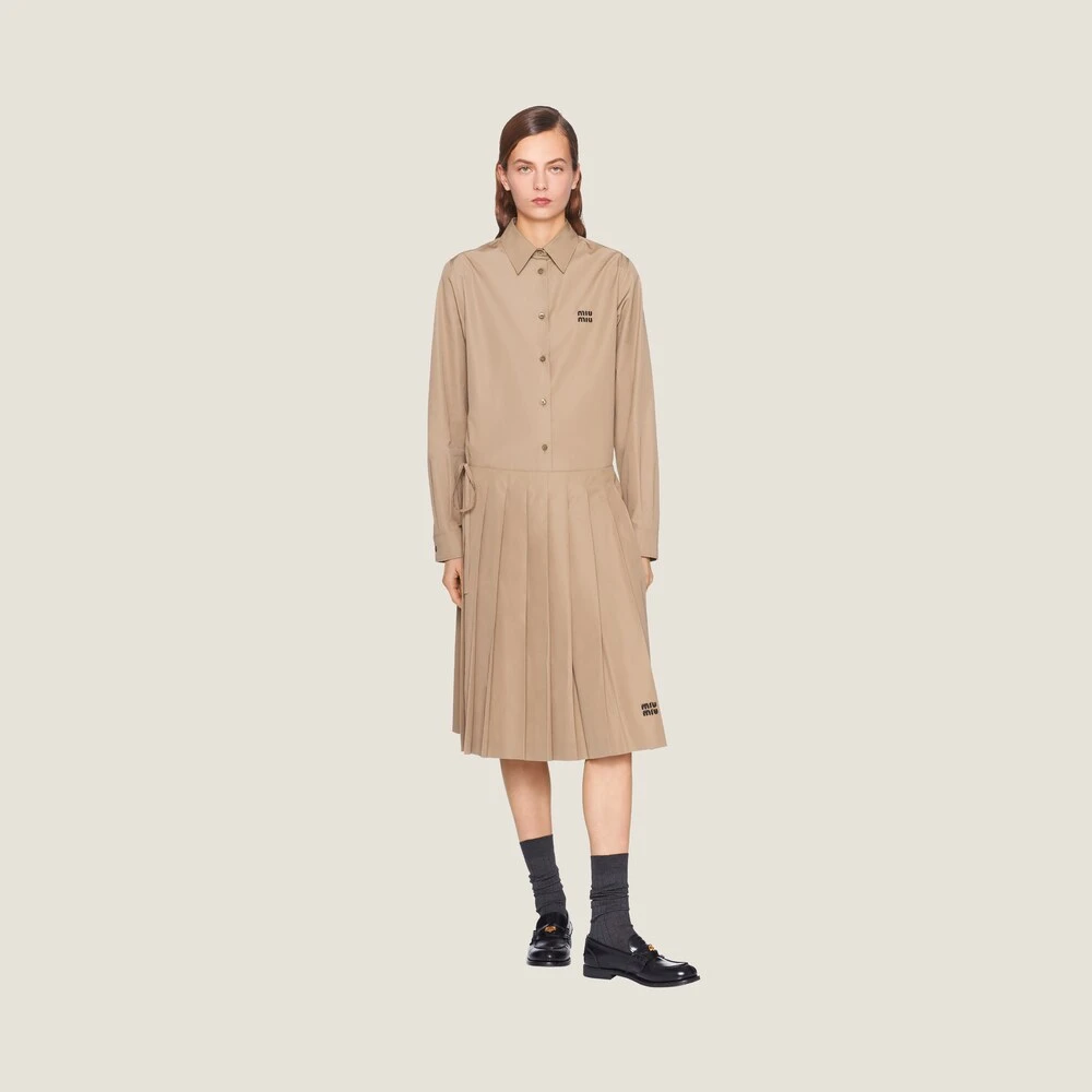 This poplin skirt, seen in the Spring-Summer 2023 show, expresses a notion of fashion as a means of translating a reaction to current reality into material form. Pleating and the side slit create movement on the garment and show how the function of fashion is not just physical but also psychological, able to make an emotional impact. The contrasting embroidered logo stands out on the garment and decorates this new vision of style.