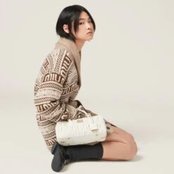 A refined, oversized style characterizes this Shetland wool cardigan. The jacquard logo is repeated on the garment giving it an iconic character, while the tie belt cinches the waist.