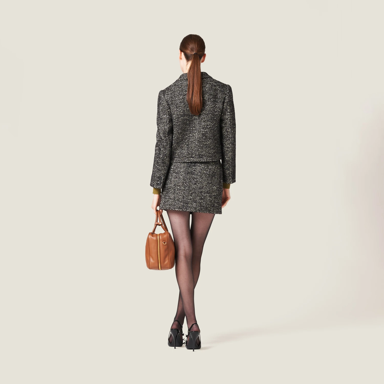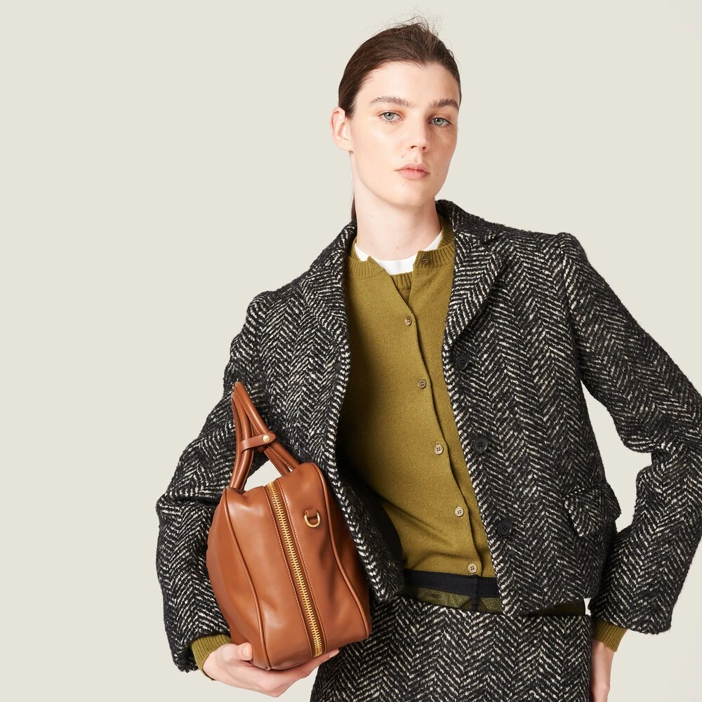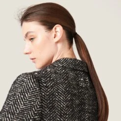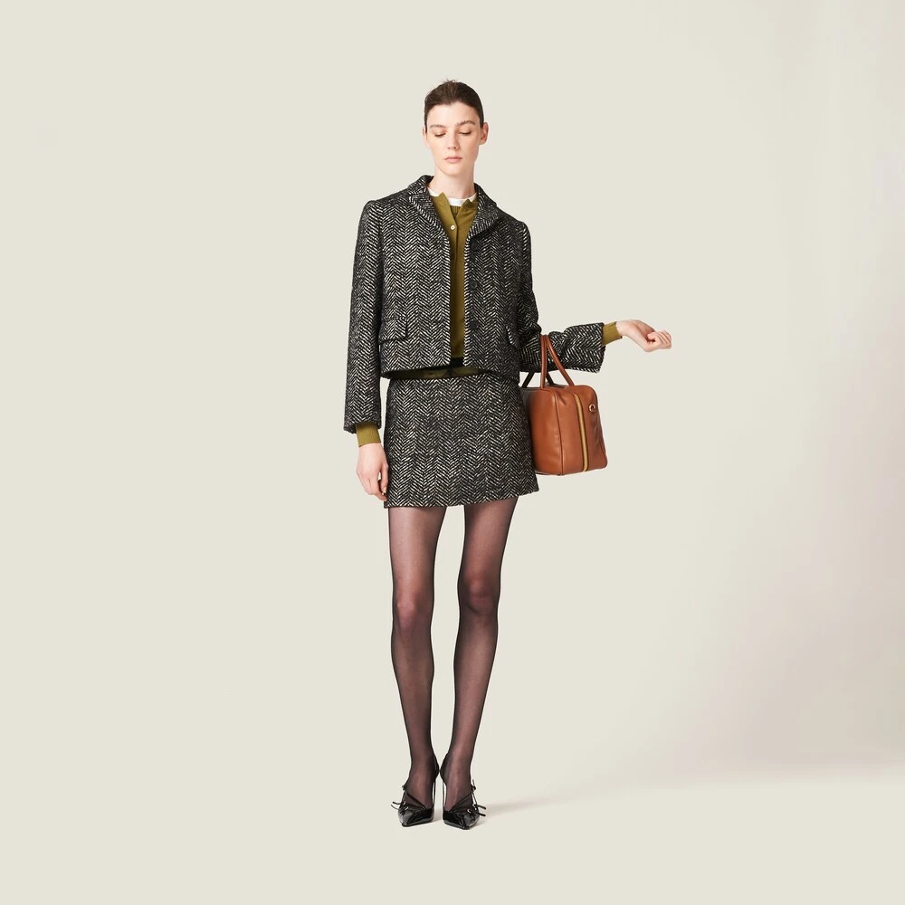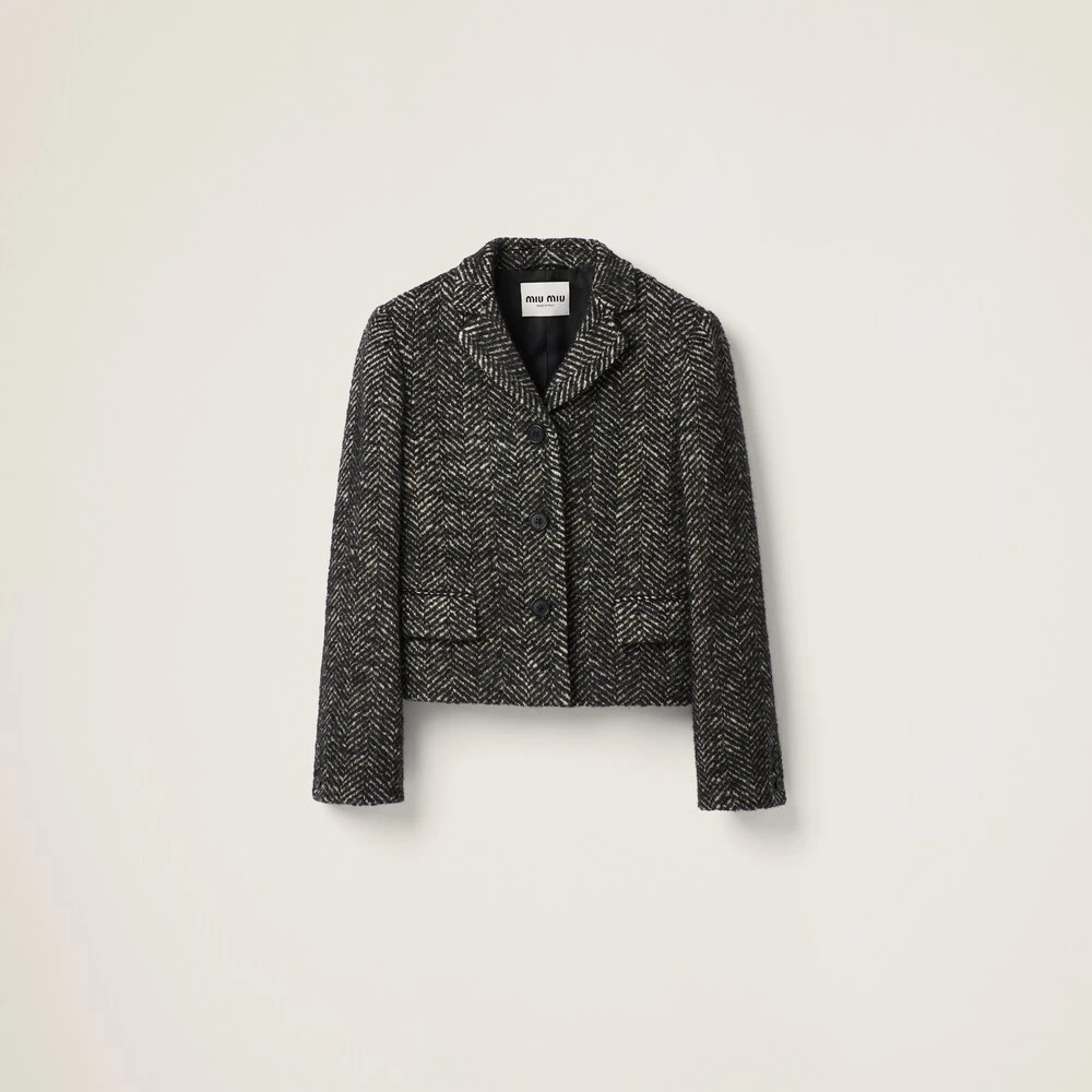 Miu Miu recovers classic patterns and inspirations to reinterpret them in a contemporary way in this single-breasted chevron jacket. The embroidered logo decorates the stylish garment.