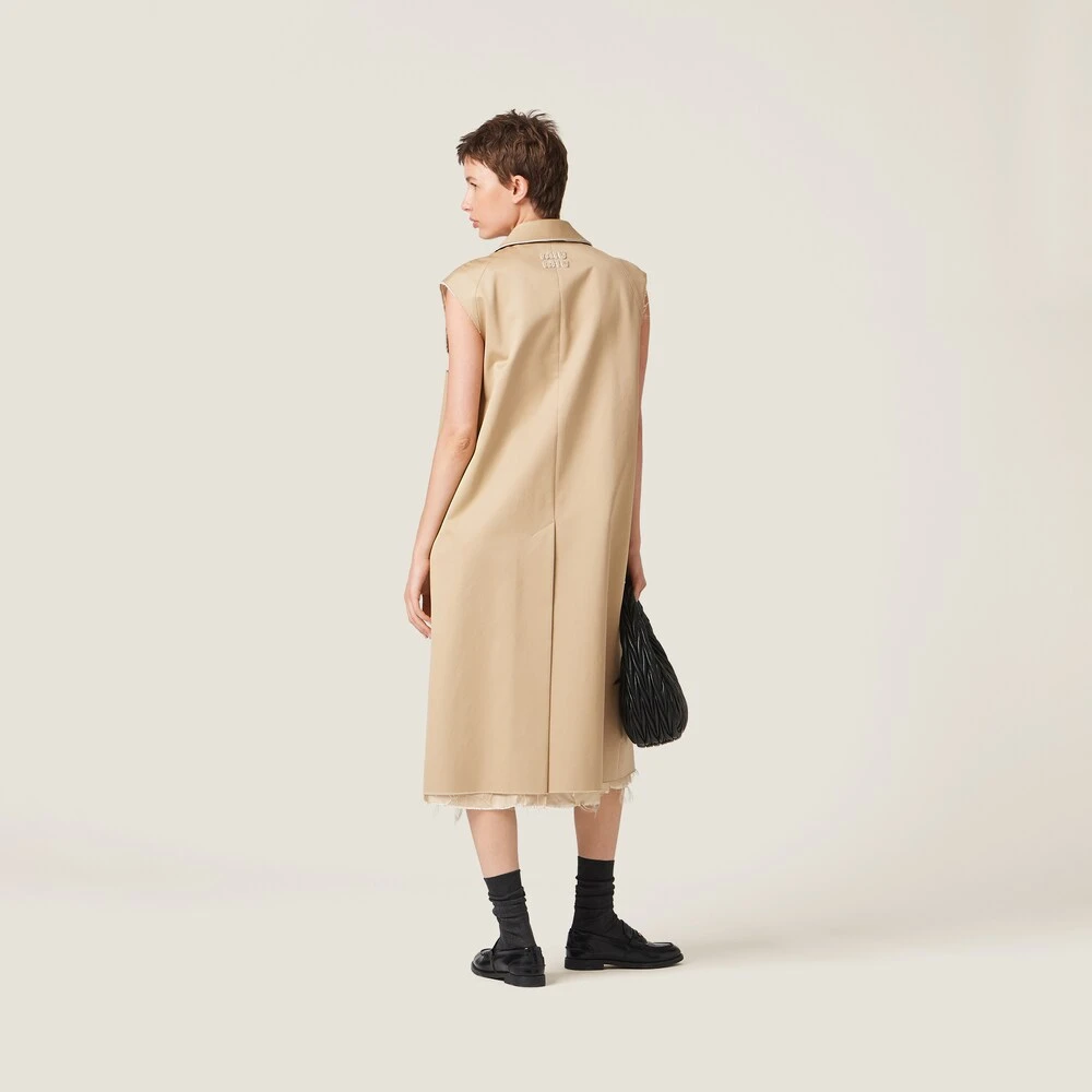 The oversized silhouette, clean lines, and raw-cut edges gives this single-breasted chino coat a fascinating, contemporary look. The contrasting embroidered logo below the back collar adds an unexpected, distinctive note.