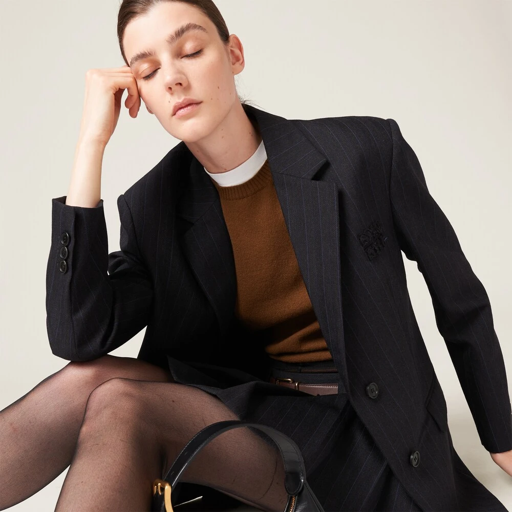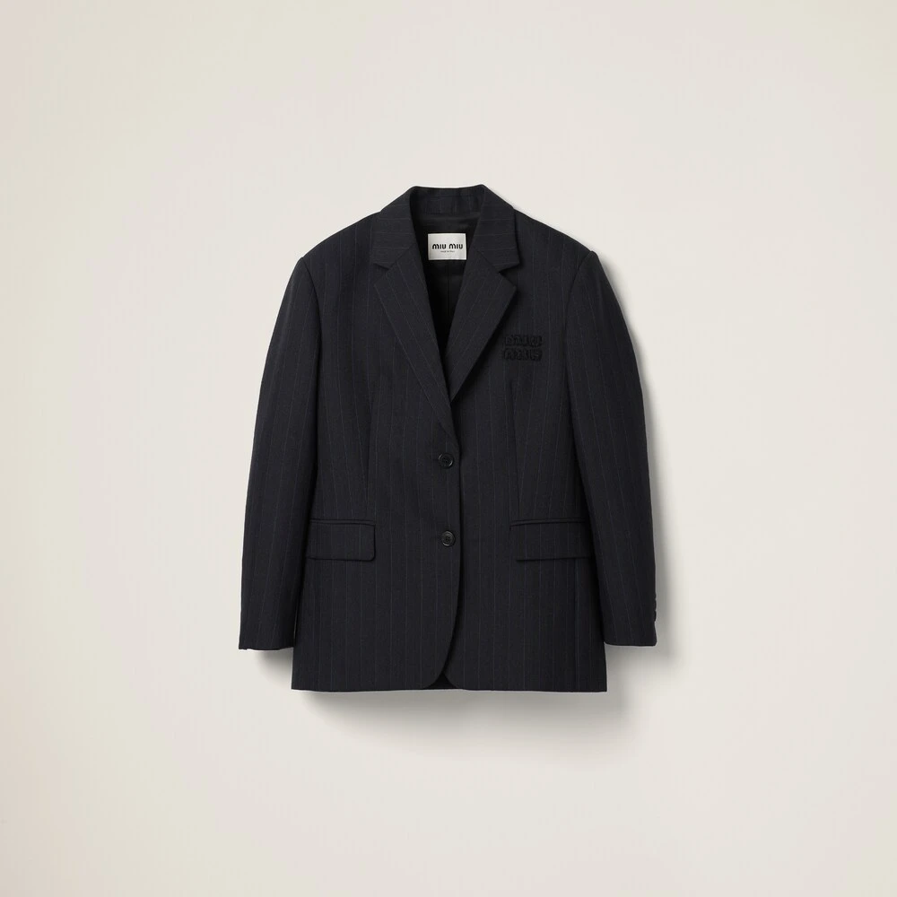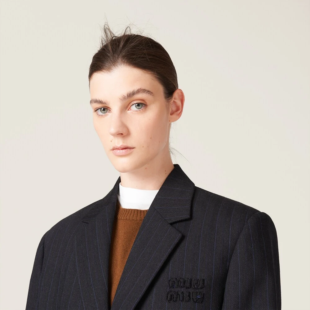 In this jacket, Miu Miu recovers a classic motif of tailored menswear to reinterpret it in an unconventional way. The embroidered tonal logo completes the look with an iconic note.