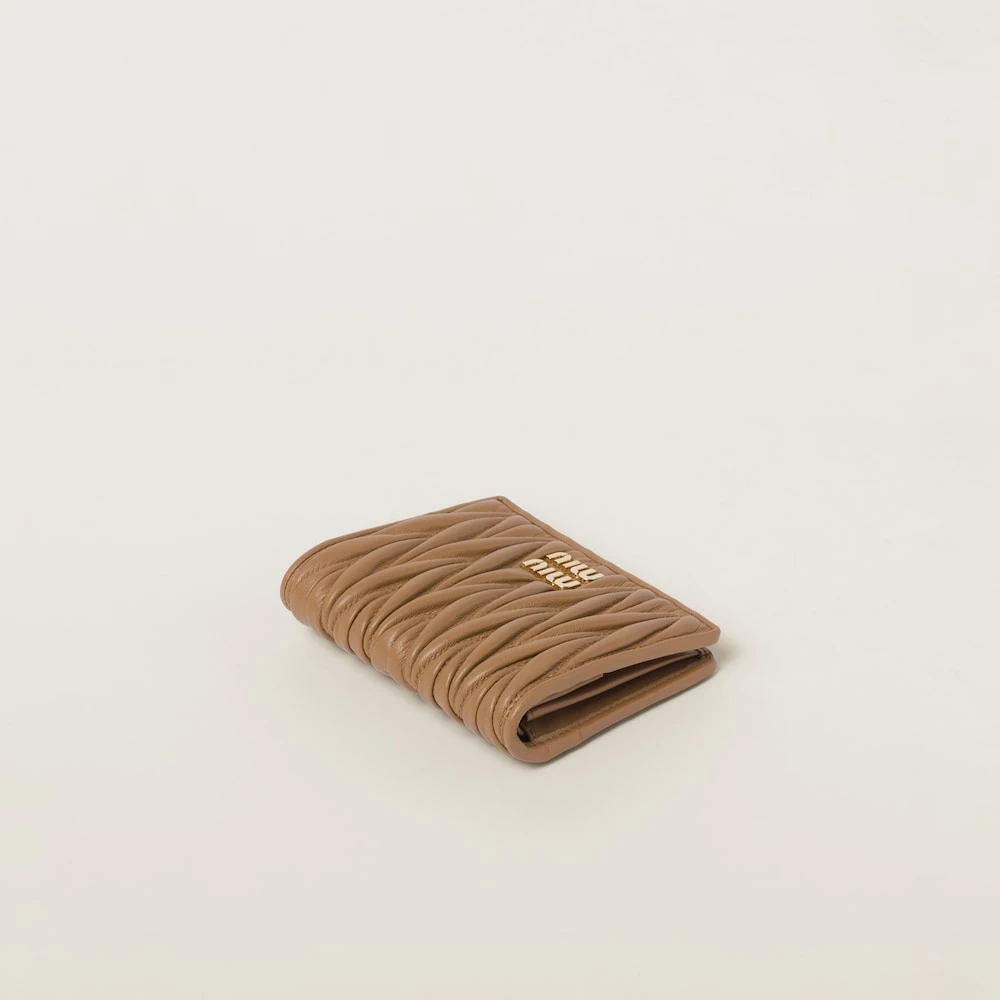 This small wallet decorated with the metal lettering logo features the brand’s iconic matelassé motif characterized by a texture that creates a sophisticated, three-dimensional effect. Its roomy internal organization is full of card slots and compartments.