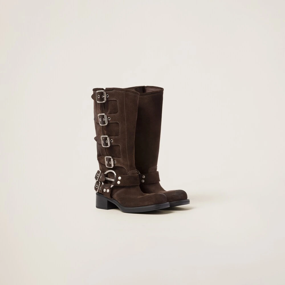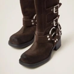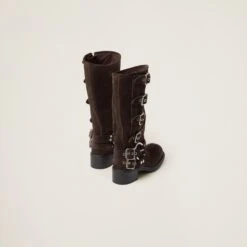 A refined design that plays with different textures characterizes these leather boots. The buckles running down the leg give the style a strong, refined character. The hot-stamped logo decorates this boot.