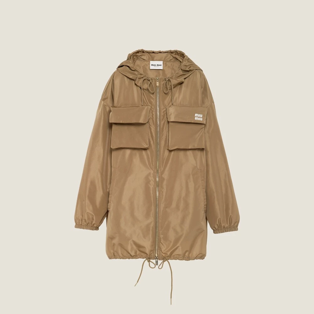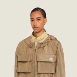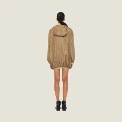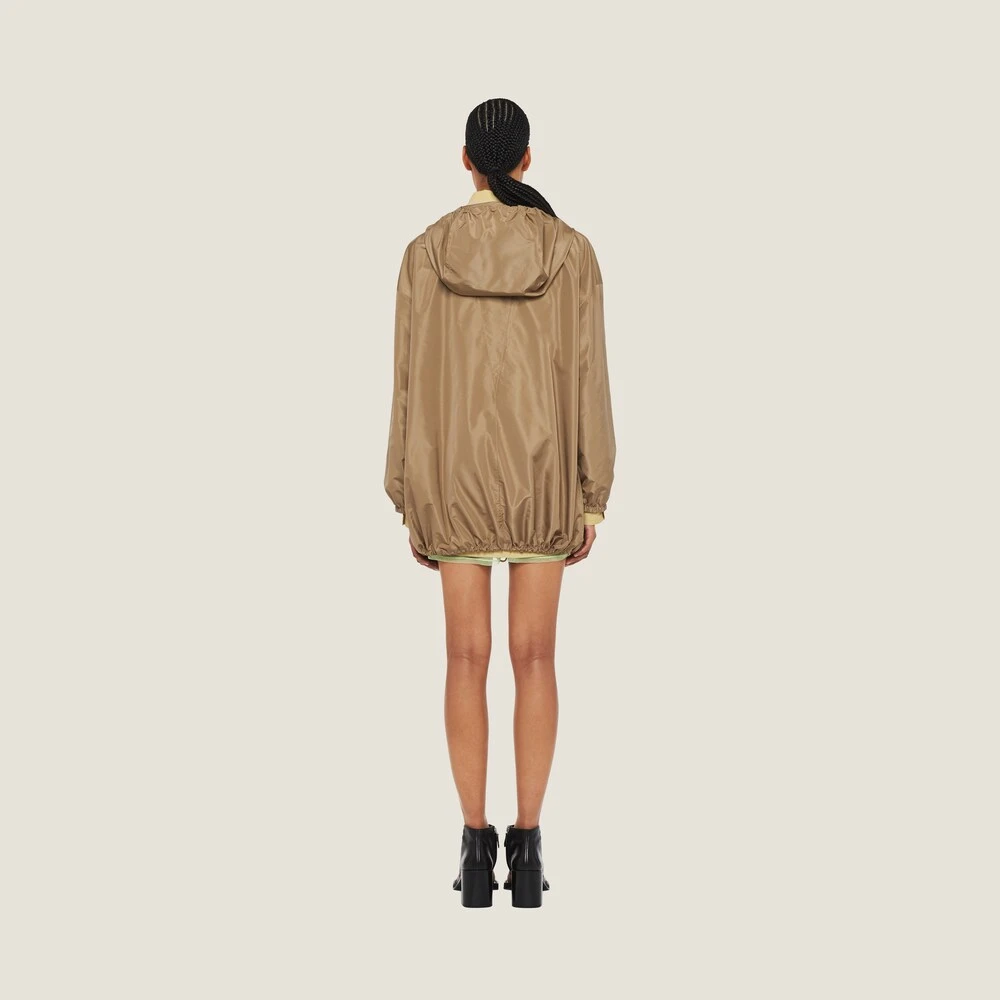 Present on the catwalk during the Spring-Summer 2023 show, the technical fabric blouson jackets express a notion of fashion as a means of translating a reaction to current reality into material form. The buttoned flap pockets on the top, inspired by the utility world, are an expression of practicality, bordering between decoration and function. The printed logo accentuates the original and distinctive character of the garment while the elasticized cuffs and hood complete the style with sporty details.