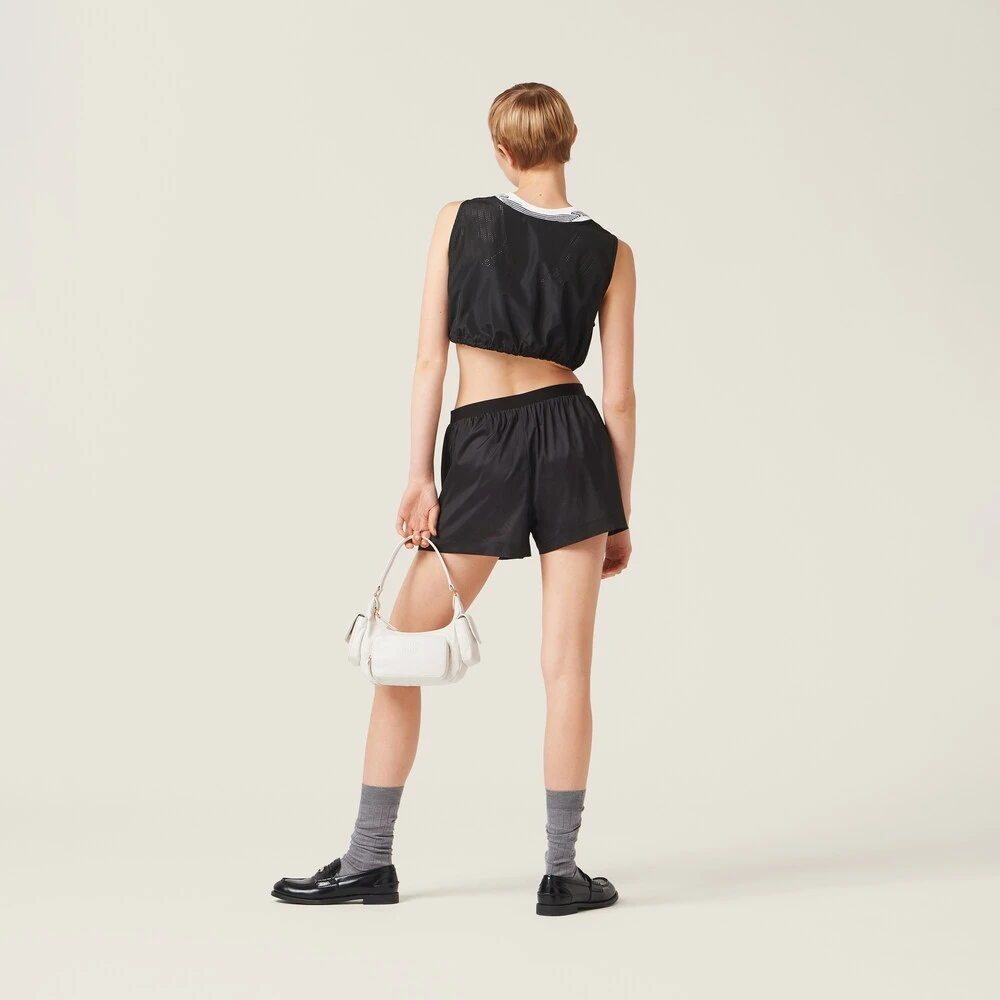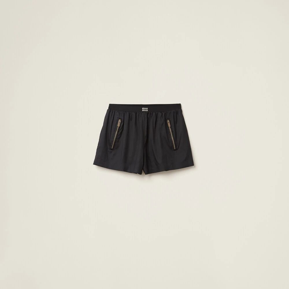 Sleek lines and distinctive details transform these new shorts into a glamorous garment. The elasticized waistband with contrasting logo adds an iconic detail while the gold zipper pockets complete the sporty silhouette of these shorts with a refined note.