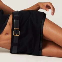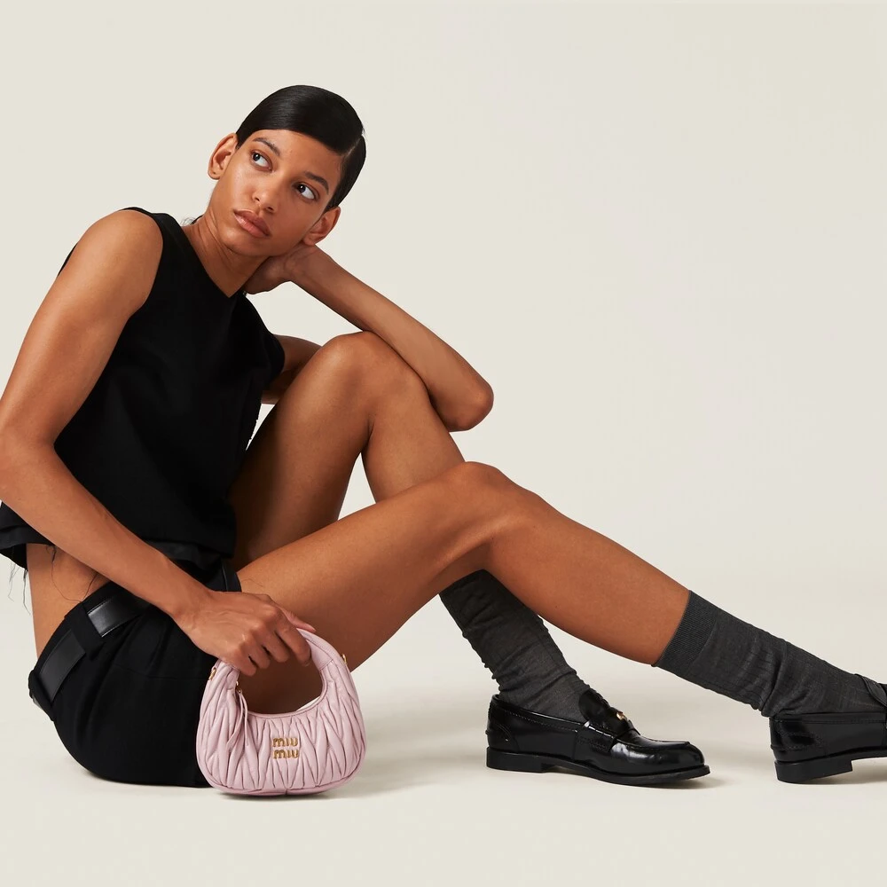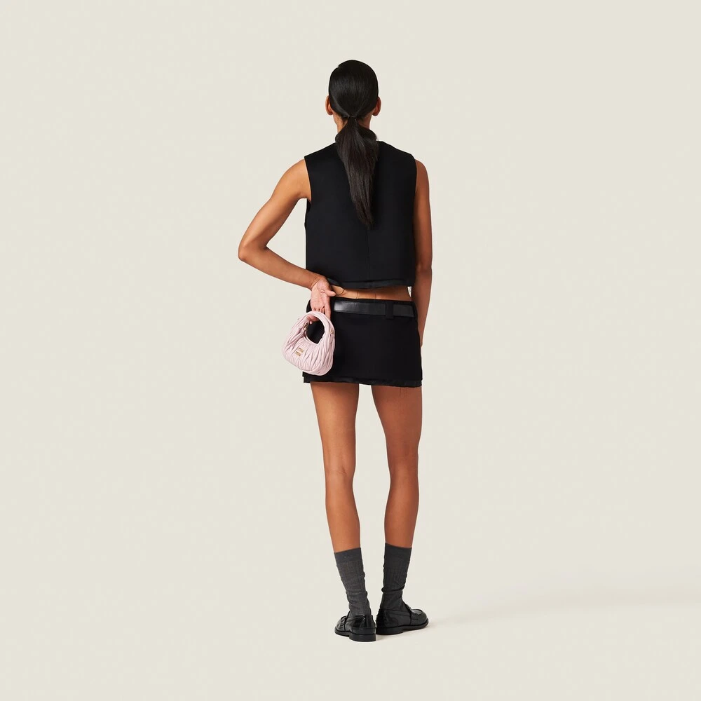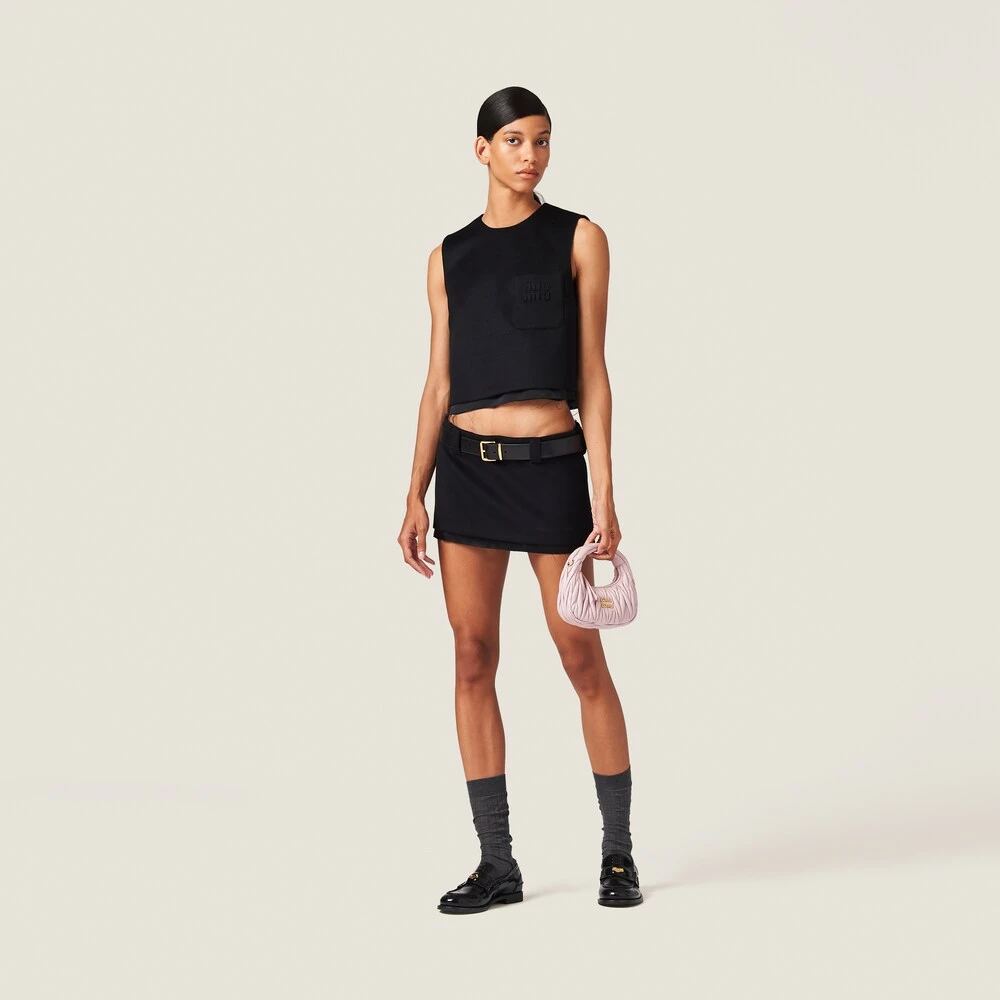This velour miniskirt expresses Miu Miu’s nonchalant femininity. The embroidered logo completes the design with an iconic note.