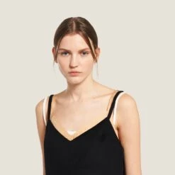 This velour top, present during the Spring-Summer 2023 show, is the result of a layering of materials, colors and suggestions made to bare the skin, revealing new realities and arousing emotions. The garment responds to a notion of fashion as a means of translating a reaction to current reality into material form. The tonal embroidered logo stands out on the back and completes the aesthetic with a distinctive detail.