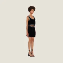 - The model is 180 cm tall and wears a size 38
