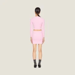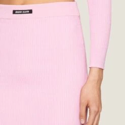 A slim-fit silhouette and mini length define the bold, feminine design of this new viscose skirt. The contrasting intarsia logo adds a distinctive and iconic note to the garment while the ribbed knit accentuates the comfortable, compact fit.