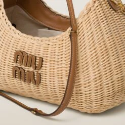 The Wander bag is reinterpreted season after season, becoming an iconic accessory of Miu Miu collections. This wicker version expresses an exotic and sophisticated style. The gold-tone hardware adds shiny touches while the leather lettering logo completes the design with an iconic note.