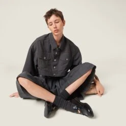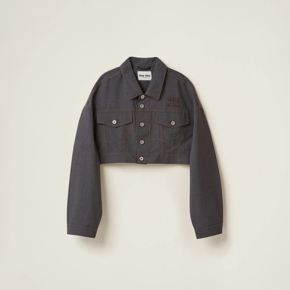 Inspiration from the denim world meets the soft texture of wool in this new blouson jacket. Buttoned flap pockets on the front, top-stitching, and metal tack buttons enhance the sleek lines of the garment, while the embroidered logo stands out with all of its iconic energy.