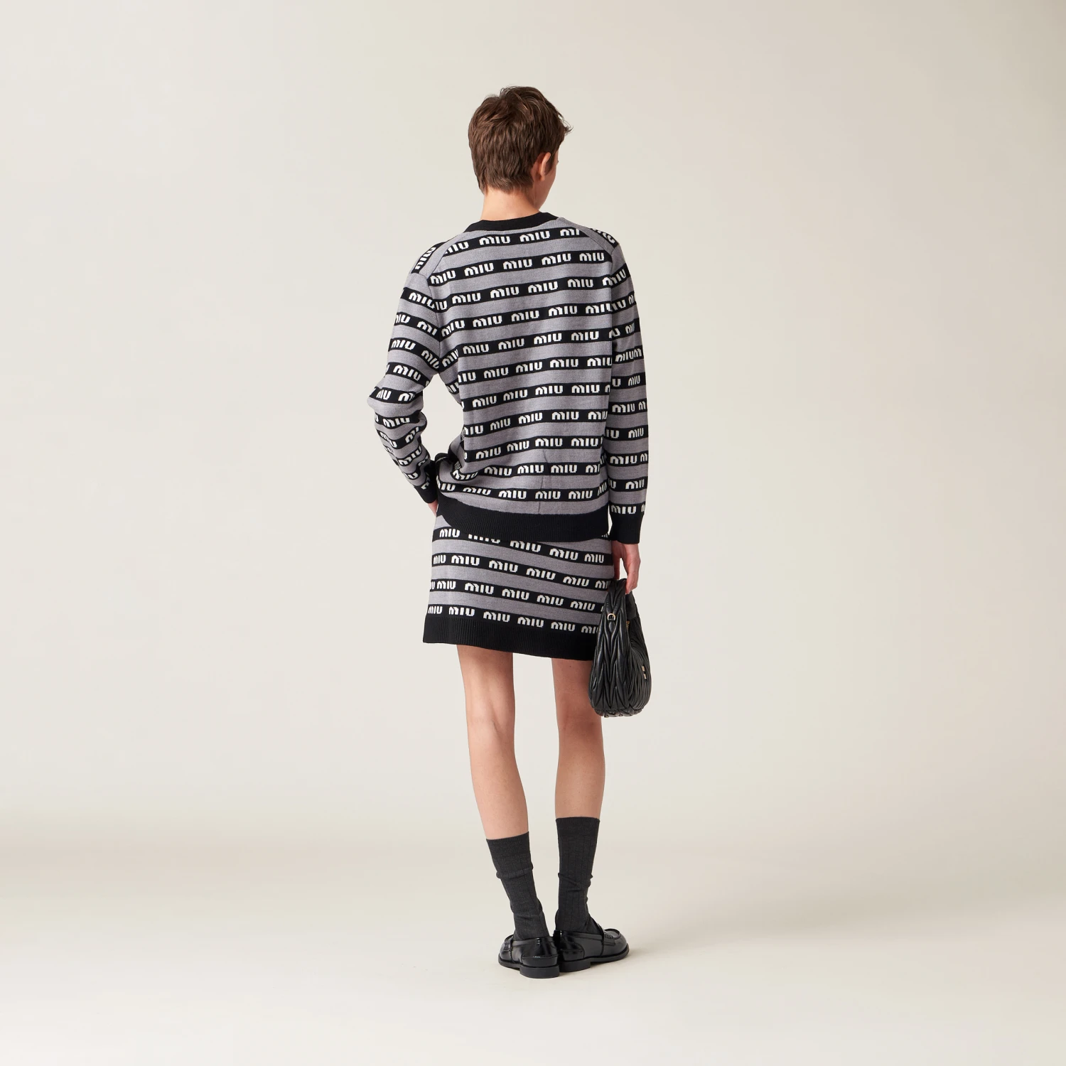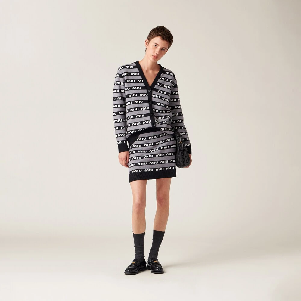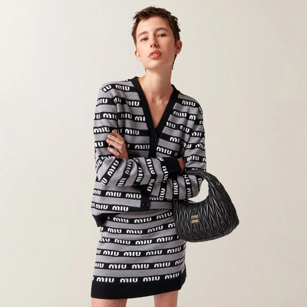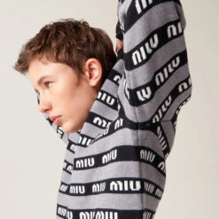 Fine knitwear with a lifestyle mood. Miu Miu plays with different stylistic codes, integrating classic inspirations and motifs of refined craftsmanship with a very modern design.