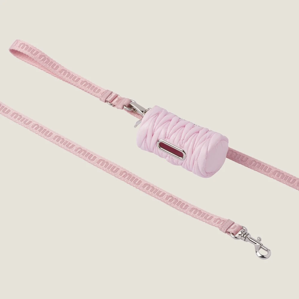 A sophisticated accessory reimagined with technical allure: this fabric leash comes with a bag holder and metal lettering logo.